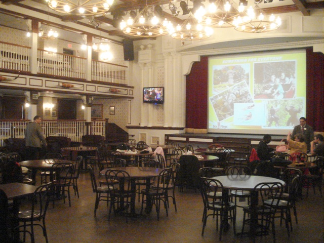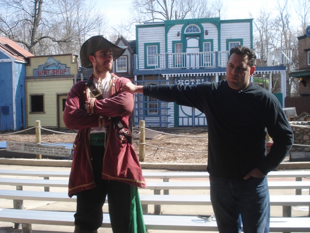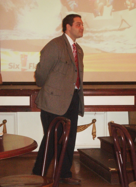 Six Flags America is a park most people seem to really love or really hate, with little ground in between. Anyone who's read my TRs on the park in the past couple years know I fall into the former category, which is why when I read in the SFA thread that sfafans.com was hosting a preview day at the park this year, I was intrigued enough to sign up. I'm glad I did. This was a day of firsts: my first non-TPR theme park club event, the first theme park event I've ever attended without any sort of ERT (or rides of any kind, actually) and, I found out later, the first time this event had ever been held at SFA. I had a great time, and I really hope it continues. That said, we (or at least I) learned a lot during the Q&A sessions: --Besides the "Survivor" show previously announced, SFA will host a "Bob the Builder" show in its saloon this season, and the saloon itself will be changing. Starting next month, the venue officially will be called a "restaurant and theater" rather than a "saloon" in an attempt to broadcast its child-friendly atmosphere. In addition, the menu will change to cater mainly to kids. Child-friendly selections such as chicken fingers will top the list of main entrees, while more adult-oriented selections (which I hope still includes the barbecue) will move toward the bottom of the menu. --There will be storage racks for riders' souvenir cups at all coasters in the park for 2011! The cups themselves will feature the new Six Flags "Go Big!" logo. --Six Flags Corporate has pledged "substantial" capital funding for SFA each year for the next five years. I'm not sure if this was just corporate-speak or not, but if true, it does seem to bode well for the park's future. However, it came with the caveat that it didn't necessarily mean a major new attraction each season. Major capital upgrades in recent years, for example, have included new data wiring and other things that may not mean much to the general public, though they're essential to keep the park operating safely and smoothly. --The Six Flags Kids shop and candy store in Coyote Creek will merge into a new mega store in 2011, featuring over 100 different types of bulk candy. --There is a chance that the old water slides in the park may re-open in some form at some point. --SFA is in talks with several vendors to offer additional up-charge attractions for 2011. --In response to reaction to the new "season passholder parking is valid only at the park where it's purchased" rule, Six Flags may include a one-time free or discounted parking pass for other parks in its 2011 coupon books. Certain parks also may be "bundled" for parking (for example, an SFA passholder may also receive free parking at SFGAd, but not other Six Flags parks). --Pirates will continue to be the theme of the stunt show in 2011--and probably the foreseeable future since money was spent to overhaul the set to a nautical theme just a few years ago--but none of the characters from past shows will be repeated this year. If the stunt show continues to be successful, there's an idea to add a boat on the audience-left side of the stage that would appear to sail in from backstage. --SFA is currently the only Six Flags park with a choreographed theatrical stunt show. --Despite popular demand, the Batman stunt show likely will not be returning to any of the Six Flags parks. During its final year, the show cost $1 million per park to produce, with the bulk of that going to Warner Bros. for licensing fees. SFA's pirate shows, by comparison, cost $30,000-$40,000 per year to produce, not including actors' salaries. That said, SFA has kicked around ideas for other comic book-themed shows. --Another idea the top brass at SFA have considered (and I think it's a good one myself) is a holiday event at the park. A P&L has been drafted, and ideas for shows have been vaguely considered, but until Six Flags Corporate green-lights the idea, it likely will not get off the ground. Even then, there may be issues. A trial holiday event at Great Escape a few years ago didn't attract as many people as corporate execs had hoped, and there are concerns that holiday events at other parks within SFA's visitor radius (Hershey, Busch Gardens, Dutch Wonderland), as well as other Christmas events in and around Washington, D.C. (Gaylord's "ICE," national tree-lighting ceremony, etc.) would dilute the potential client base. --There is a plan to add more flat rides to the park in the coming years. Many in the audience said they would support this--as well as the addition of a wild mouse or mine train coaster (though to be fair, it didn't sound like those were in the plans)--to help attract the tween audience. SFA has made a push for families in the past couple years, and there was a concern among those attending the event that once the children who enjoy Looney Tunes Movie Town and Whistlestop Park become too old for those areas, the park really doesn't offer them too much reason to return until they're old enough to tackle coasters like Mind Eraser and Superman: Ride of Steel. There's probably more, but that's what I remember. And now, without further ado, here are some photos for your viewing pleasure. Wow, Six Flags America! What's it been, like five months? You haven't changed a bit! SFA's crack group sales team staffed the goodie bag table and basically treated us like VIPs during the entire event! Speaking of goodie bags, this is what was inside. I thought the SFA golf balls were kind of a neat--if random--surprise. And awaaaayyyy we go! First stop of the day: the Crazy Horse Saloon. BUF-FAY!!!! See that stuff on the hamburger roll on the left? That's some *extremely* tasty barbecue! I never imagined theme park 'cue could taste that good, especially this side of Knoebel's. The petit fours (between the garlic bread and the cookies) were also a surprise. Six Flags director of operations Randy Wilke was among the "big wigs" who spoke during the Q&A. Though, truth be told, their wigs really weren