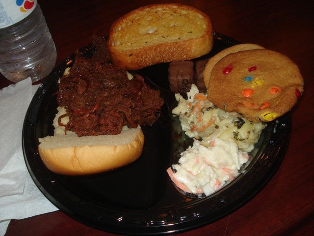 Time to move into July! Enjoy! Kelly and I celebrated my birthday in July with a few days' vacation in the Gatlinburg/Pigeon Forge area. On the way there, we made a detour through Winston-Salem, NC, to see the world's last Shell gas station shaped like an actual shell. I'll post a photo if I ever get around to the "Jason's Non-Amusement Park Adventures" thread I've had planned for awhile. I found these at a gas station (the Shell one isn't functional anymore) in the area, and they were delicious! We were fortunate to hit our first stop in Pigeon Forge just as rush hour began, meaning we got to wait out the gridlock eating dinner instead of sitting in our car. This is the Applewood Farmhouse Grill, which we learned about through Erik and Smisty's thread. (Actually, we planned a good portion of our trip around that thread.) Our booth was right next to the bird atrium. As promised in the Erik and Smisty report, we got free apple fritters and a cider-juice cocktail as appetizers. Either this was the only food there I thought was worthy of taking a picture of, or we were so hungry that the rest of it was gone before I thought about taking my camera back out. Either way, this is the only food shot I have from this place. This was across the street from our hotel. We didn't eat there... but man, what a creepy sign! A few years ago, I did a self-guided rib tour of Memphis, but I never got to Corky's. I was excited to find out they had not one, but two outlets of the regional chain in this area. See? Original Memphis barbecue! First you can eat a pig... then you can ride one! For just $1 more than the menu price for a rack of ribs, I upgraded to all-you-can-eat ribs! It was well worth the extra Washington. Having said that, as good as these were, most of the ribs I had in Memphis were even better, so Corky's was a fortunate miss on that trip. I'm a history buff, so when we found out there was a highly recommended restaurant in an old mill complex on the National Register of Historic Places, there was no question it would be on our agenda. What I didn't know, however, is that it would turn out to be our best meal of the trip! We traveled to the restaurant after visiting the nearby Salt and Pepper Shaker Museum, which was a delight all on its own. The shakers on our table were made by artisans on the premises. We began our meal with an appetizer of fried green tomatoes and Parmesan. Now, I'm no fried green tomato expert, but these were far and away the best I've ever had. And then came the main courses! Kelly got a chicken and almond quiche with strawberry salad, both of which were out of this world. We shared the bowl of jalepeno corn pudding on the side. My pulled pork sandwich wasn't quite up there with Holy Hogs, but it was pretty close! I'm not a big fan of the Carolina-style barbecue sauce it came with, but the pork was so moist, it didn't need sauce anyway. I dipped my French fries in it. We were absolutely stuffed by the time we were through, so I skipped the slice of coconut cream pie I had my eye on, and we walked around the complex for awhile before heading off on another adventure. A few hours later, however, we returned for a late dessert at the Old Mill's creamery, which was also recommended by Erik and Smisty. In fact, when I got home, I discovered they had this exact same shot in their TR. Butterscotch Oreo? Yes, please! While we're talking sweets, a couple minor deviations from the roadfood plan. First, we got to see candy being made at the Ole Smoky Candy Kitchen. We bought gifts there, but since I didn't actually try any of the candy, I can't really comment on its quality. Oooh.... Sir, I like the way you handle that candy! This trip also marked the first time Kelly ever tried a hot Krispy Kreme doughnut. It's like sweet, greasy crack in a box. For our last meal in Gatlinburg, Kelly wanted to check out No Way Jose's Mexican Cantina. Catch of the day! The chips were my favorite style, and the queso seemed pretty authentic. The carnitas looked good... but they were really just OK. I've had much better closer to home. On the way home the next day, after lunch at a Waffle House in Virginia, we stopped for one last roadfood dinner at the Market Street Public House in Denton, MD, which was recommended by a co-worker. The roast beef and brie sandwich was awesome! Kelly really enjoyed her chicken wrap, as well. We've been back since and always have a good meal there. At the end of July, we traveled with some friends to Wilmington, DE, to catch a Wilmington Blue Rocks minor league baseball game. The stadium's parking lot has an outlet of the Pennsylvania/Delaware regional Iron Hill Brewery chain, which was where we opted for dinner. The cheese steak egg rolls were great! I'd order them again any day. The pulled pork sandwich, on the other hand... was pretty bland. I mentioned earlier that I don't really care for Carolina-style barbecue sauce on pork, but I emptied the whole ramekin-full of it on this sandwich just to give it some flavor. Couple that with the horrible service we received (we're 99 percent sure our waitress was high), and Iron Hill isn't high (no pun intended) on the list of restaurants I'd like to return to any time soon. Up next: A dining tour of Utah! -