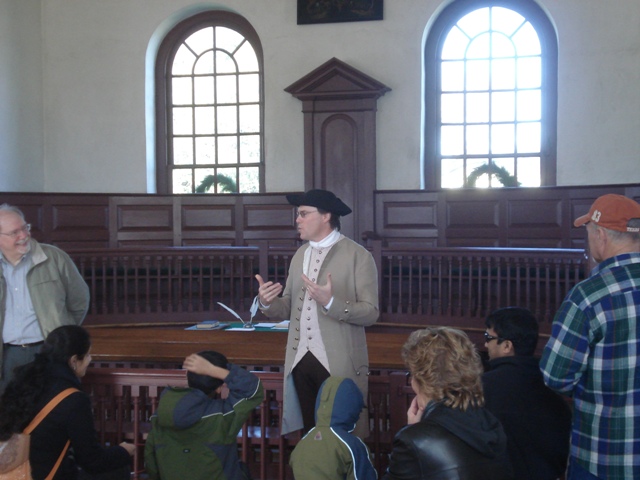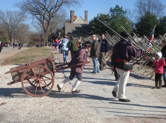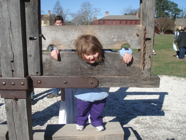 About a month ago I posted my Busch Gardens Christmas Town experience in the "Theme Parks, Roller Coasters & Donkeys" forum (Clicky here) and promised that the non-theme park portion of our trip would be coming soon. Well, "soon" is here! Enjoy! On our way back to our car, we spied some Colonial cows! And then we went to Christmas Town. And then we continued our travels northward. Coming up next: Virginia Beach. Of course, what is any tourist town in the early 20th century without a faux trolley? Nice to see those silly colonists finally got with the times and started using energy-efficient bulbs! It was a little cold to be eating outside, but whatever this place was serving sure smelled good. "Grrr, I'm a scary warthog! Buy my groceries!" About the only thing we didn't get to do at Williamsburg that we remotely wanted to was tour the original capital building, seen here. However, we needed to get back on the road for our second night at Christmas Town, and based on what we did get to see at Colonial Williamsburg, it probably was no big loss. Burial grounds at amusement parks = creepy. Burial grounds at Colonial Williamsburg = historical. Welcome to ye olde nick-nack shoppe! That be British firewood, it be! "I'll take one with a lady, please." Out back: a nice, kid-friendly pile of coal! Yay! By the way, is it just me, or does everyone at Colonial Williamsburg look severely pissed off? Must be all that taxation without representation. What could be more thrilling than the Anderson Blacksmith Shop? Play that funky music, white boy! We stopped here for a snack. To keep things authentic, we only purchased items that were available in Colonial times. Like ginger cakes. And hot cider. And Aquafina. Why, it's ye olde firehouse, of course! And what's this lovely little cottage next to the magazine? Those items, of course, being the drums. This is the guard. He watches over the most important items stored in the magazine. Pardon us while we hit the powder room. To the magazine! (Personally, I prefer "Mad," but this old building will do, I guess.) Excuse me, is that your gun, or are you just happy to be here? Inside the courthouse, some guy was talking about stuff. That's as honestly about as much detail as I got out of it. This is what the Hill Valley Courthouse would have looked like had it been in Williamsburg instead. And come to think of it, if that movie had taken place in Colonial Williamsburg, would Marty have realized he had gone back in time in the first place? ...but how many have the "child in leg stocks with the sun in her eyes" version? Now, everyone has the standard "tourist in stocks" picture of Williamsburg... "Excellent, excellent... send me more children to eat!" I'm not sure, but I think I see some violations of child labor laws here.... Tweeteley-deeteley-dee... tweeteley-deeteley-dee! OK, enough of that... here comes the fife and drum corps! And now we pause for a view of the scenic Virginia countryside. Meat! This, in my opinion, was the best thing at Colonial Williamsburg. The food looked kind of disgusting, but it smelled great. Take the tunnel... again! As you can clearly see, the early governors of Virginia were big Kid 'n' Play fans. After the dances ended, usually between 1 and 2 a.m., the govrernor would treat his guests to a post-party dinner in here. That dish on the left is supposed to be pigeon. This, of course, would be the stove that heated the ballroom. Apparently they kept it kind of cold in there to encourage guests to get jiggy wit' it. This is the ballroom--and what's a ballroom without a harpsichord? This is where Thomas "T.J." Jefferson did the nasty in the pasty. Assuming he didn't kill them first, this is where the governor would have cheated at cards with said visitors. Every square inch of the entryway of the governor's mansion was covered with guns and swords. According to our guide, this was to let all who entered know that the governor was badder than Shaft (I may be paraphrasing). Pardon me, sir, but your pantaloons are showing. Next stop: the governor's mansion. "What say ye, guv'na?" This is what the finished product would have looked like. Goody Smith (or whatever her name may have been) tried to show Lauryn how to make a traditional Christmas wreath. I timed it; it took Lauryn a full 39 seconds to get bored enough to walk away. They had lots of carriage rides, but fortunately (because it meant I didn't have to pay for one), they were all sold out by the time we got there. Like this church, for instance. Yep, that looks pretty old. But enough of that. Let's go see some historic-looking stuff! "Treeland, Treeland, little girl and--" no wait, that doesn't rhyme.... The outdoor market in Merchant Square was going full force when we showed up. I have the utmost respect for Colonial plumbing. Kelly was worried about Lauryn's ability to keep up with all the walking we needed to do, so a couple weeks before the trip, I managed to save this giagantic stroller from the Dumpster (a neighbor was about to throw it out when I intercepted). It barely fit in the car, and on the way home it ended up getting wedged in and breaking my suitcase. We nicknamed it "Strollzilla" and are in currently the process of trying to find someone stupid enough to give us $50 for it because neither of us want to see the (expletive deleted) thing ever again. It was, I believe, the first weekend of the Christmas season. Even the lampposts were decked out. But you've already read about Christmastown... so fast-forwarding to the next morning, we were bundled up and ready to check out Colonial Williamsburg (check out the fashionable "Pirates of the Caribbean" headgear). Since this was the day before Thanksgiving, we brought some leftover turkey, stuffing and cranberry sauce sandwiches for lunch, then we settled in for a long winter's nap before heading over to Christmas Town. AHHHHHHHHHHHHHHH! Take the tunnel! First stop: a random gas station in Eastern Shore Virginia, where I'm su
