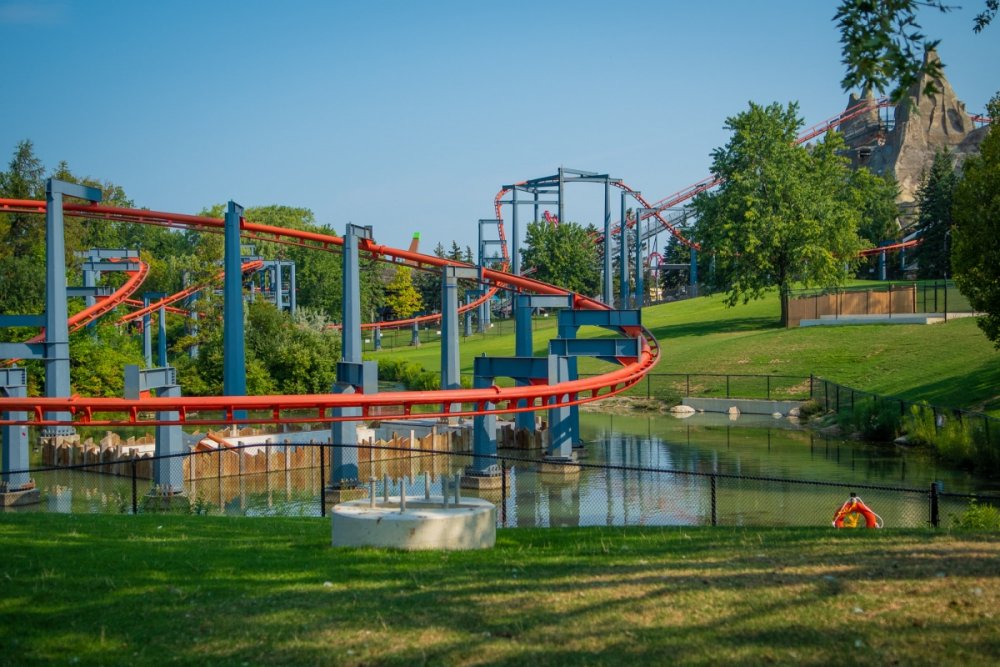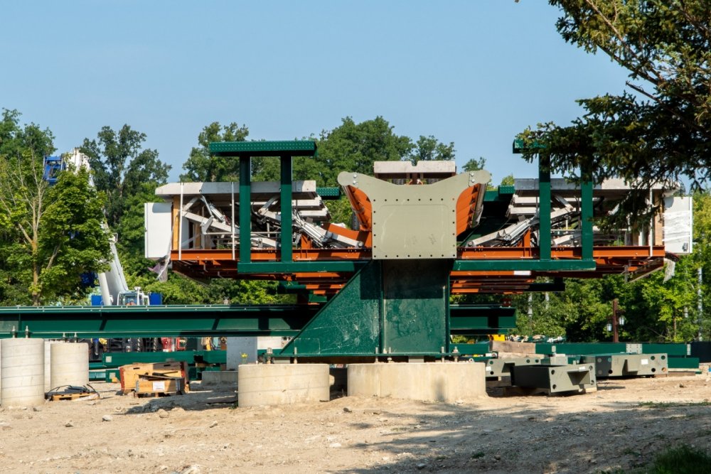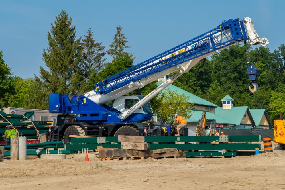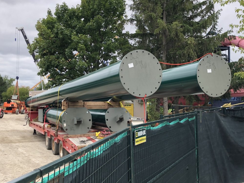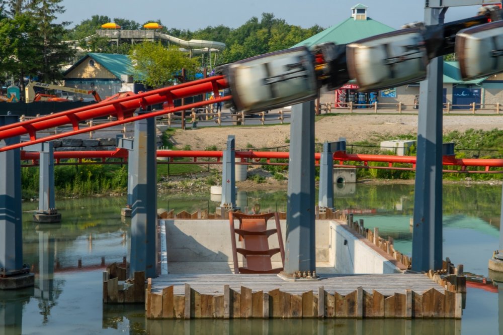 Construction is moving quickly. I think the end of summer is making everyone squeeze in a last visit as the park was super busy compared to other summer days. Every queue was full and overflowing on to the walkways. Nevertheless, everyone seemed to be having a good time, if with a slight look on everyone's faces that summer is just about over. Is it really Labour Day weekend already? Nicman, that looks to be the general location of hotel. It will be facing highway 400 on the plot of land next to the CW highway sign. Here are some pics. Have a great long weekend, all! Looking forward to this drop out of the station. The base of the lift hill being, well, lifted, into place. Tilted into place and.. ..installed. Only up from here. Lift columns. Footer fun. (for the helix surrounding the walkway). Lift hill footer. Mine Buster queue. It's just a touch busy. Lift hill columns Vortex queue -