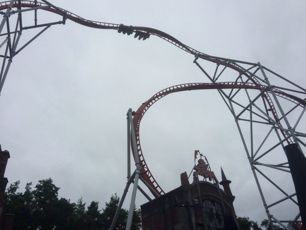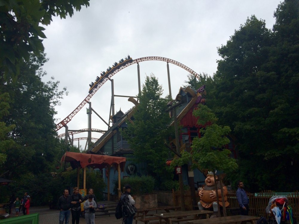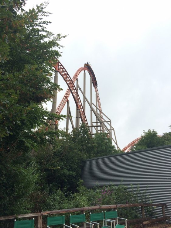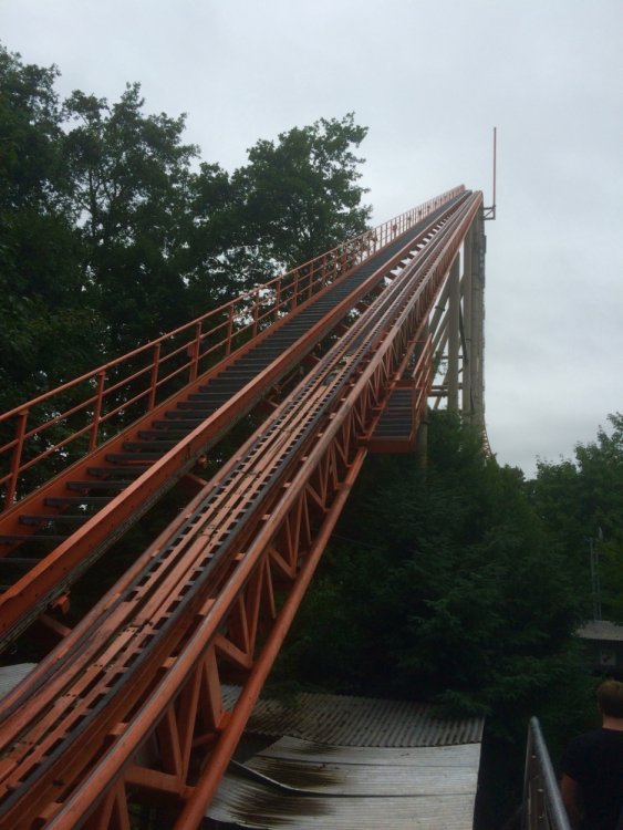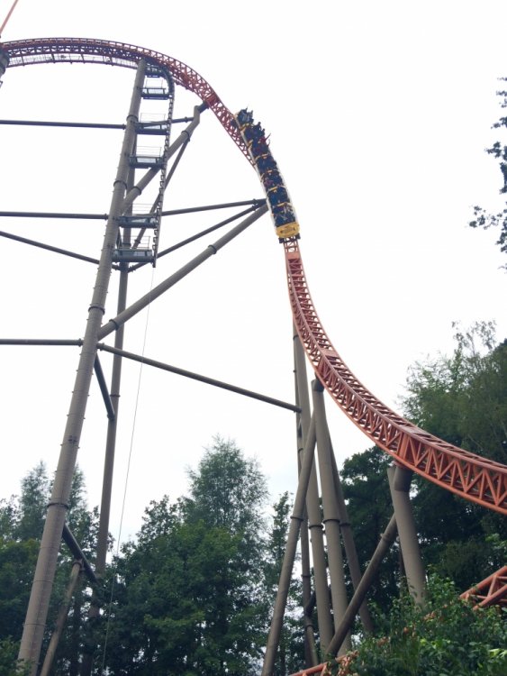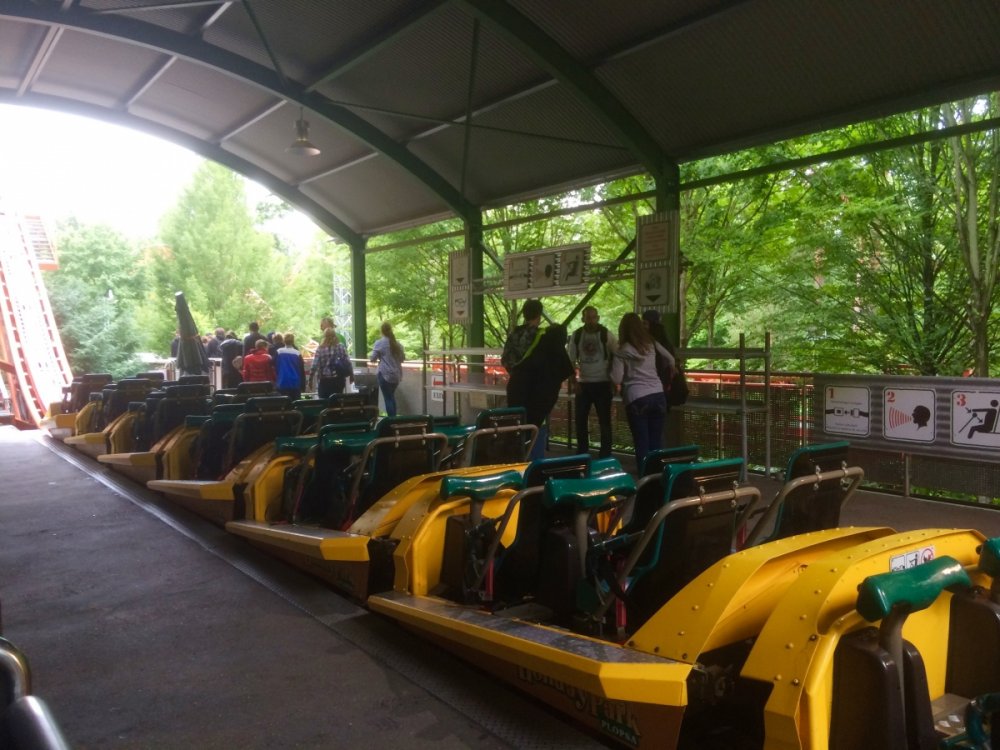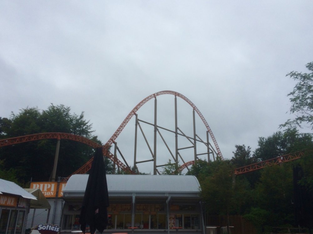 16. Hey, guys! So, a few weeks ago I reallyyyyy felt the coaster-cravings starting to set in, and I decided to spontaneously do a mini-trip to Holiday Park, which I hadn't visited yet. The idea was to take the night coach from Berlin to Mannheim, visit Holiday Park during the day, ride a certain orange coaster again and again till collapsing (either me or the ride), and take the night coach back again. About one minute after booking that I decided to add Tripsdrill as well since it wasn't far away, I never went before, heard nice things about it, and because, well, coasters. This is going to be my first trip report by the way, so please bear with the cheesy captions and the apparently also quite cheesy camera lens of my iPhone... The trip started with a 'nice' and very full 8 hour coach ride from Berlin. Well, at least it was cheap! After a night with very little sleep (but plenty of nearby bodily odors to enjoy!) I arrived in Mannheim at 5 in the morning. My home for the next 4 or so hours... If you have extremely sharp eyes you might spot it. "Oh, another stupid amusement park! But... wait... that girl looks kind of kinky, though. I wonder what kind of 'holiday' it is they offer......? I... I guess I'll give it a shot then....." And after what felt like the longest 4 hours in my life, I was finally on my way. The park is just a very short train ride from Mannheim. It was supposed to rain all day... Ohhhh... Take me already!!! ...annnnnd 12 hours after leaving Berlin, I'm finally here, right for the opening! (Yes, this was literally the entire crowd waiting to get into the park with one of the best coasters in the world 10 minutes before opening. NICE.) After stuffing my belongings into a fluffy, fluffy hamster filled with pharmaceuticals and gravy it was time to head in! The entrance looks really nice. Waiting for the rope to drop. That employee could hardly handle the massive crowds just DYING to get into the park. Oh. My. God. It's time. The moment I have been waiting for. I felt it calling me, felt its shining orange track attracting me to its grip like a magnet, my heart pounding faster for every inch closer I stepped. PRAISE THE HEAVENS, I HAVE ARRIVED, AND HERE I STAND BEFORE THEE. OK, I'll pull myself together for a moment now. Expedition GeForce. I couldn't wait to ride that coaster, and lucky me had the ride pretty much to myself all day. There were always a few rows free. I was on the very first ride of the day, in the very front row. There I randomly met a really nice guy and fellow coaster nerd, Julian, and we stuck together for most of the day. Yay for not being sad and lonely! The lift is fast and smooth as we know it from Intamin cable lifts, and if you're on the right side of the train it offers great views of the ride to come. And what a ride! The first drop: In the front row you get nice hangtime to PERFECT floater, all while you feel your body being twisted around its own axis, the track is perfectly heartlined. It basically feels like flying. Now, in the back row, it's a completely different story... The best way to describe that is "HOLYYY SH*T!!!" You get yanked out of your seat and flung violently to the side, just crazy ejector air the whole way. Awesome! The rest of the ride is all about airtime. The two initial hills after the first drop produce great, glued-to-the-restraint ejector... ...with a pretty forgettable overbank in between. The next section is also nice, but probably the weakest part of the ride: Another overbank followed by a steep upward turn to a straight slope down, none of which really did much except offering some pretty cool perspectives. Luckily, this is followed by an AWESOME twisted airtime hill, snappy and full of ejector. Pure Stengel. After another overbank, the ride's finale consists of four perfect bunny hops (with a 90 degree left turn between number 2 and 3), full of airtime. All in all, Expedition GeForce is an amazing ride and lands solidly in my top 5. After the initial 6 or 7 rides on EGF it was time to check out the rest of the park. First up was their log flume, Wickie Splash. It's actually one of the better log flumes I've been on. Three drops, one backwards, and the last one a double down... The theming was really cute, maybe a bit too "cartoonish" for my taste, though. Also, I somehow failed to get a shot of the big drop. AWESOME JOB MAN :) :) :) :) Next up was the Premier launcher Sky Scream. The queue had great themiAAARGGHGHHHGHHHHHHHHHH ARRRRGHHHHHHHHHGRRRRRWLLLL!!!! AAAAHHHNOOOOOOOOO THE HORRORRRRRR :'( :'( :'( oh wait, that's me, tee hee The ride was really good, but not great. The launches were a bit weak but fun, but the hangtime in the heartline roll was nice and the non-inverting loop was super, too. Definitely worth a few rerides. My only real complain are the annoying restraints with the shin guards, not terrible comfortable. But the ride is quite smooth, so it's ok. Do you guys notice my captions get less and less funny? Yeah, I'm running out of ideas, so I'm gonna put some bad jokes through Google Translate and post them in Finnish for our Finnish readers. Miksi kana ylitti tien? Jos haluat päästä toiselle puolelle! Mikä on vaarallinen ja keinut puista? Apina moottorisahalla. Vanha nainen ostaa pari papukaijat, mutta hän ei voi tunnistaa niiden sukupuolia. Hän viettää viikkoa tuijottaa niiden häkki ja lopulta hän saaliit ne tekevät mitä tulee luonnostaan. Varmistua, että hän ei saa niitä sekaisin uudelleen, hän asettaa hieman valkoinen kaulus ympärillä mies papukaija kaulaan. Myöhemmin, paikallinen pappi vierailee vanha rouva. Miespuolinen papukaija ottaa yhden tarkastella isän kaulus ja sanoo, "Näen hän tarttui sinut sen myös." (By the way. Lovely theming. Must've been a bear sale.) You're welcome. Next up was this massive erection. It took me on a nice ride. They had a nice kiddy area, too, very cartoonish but cute. The giant flowers kind of remind me of Arthur at Europa Park. They had