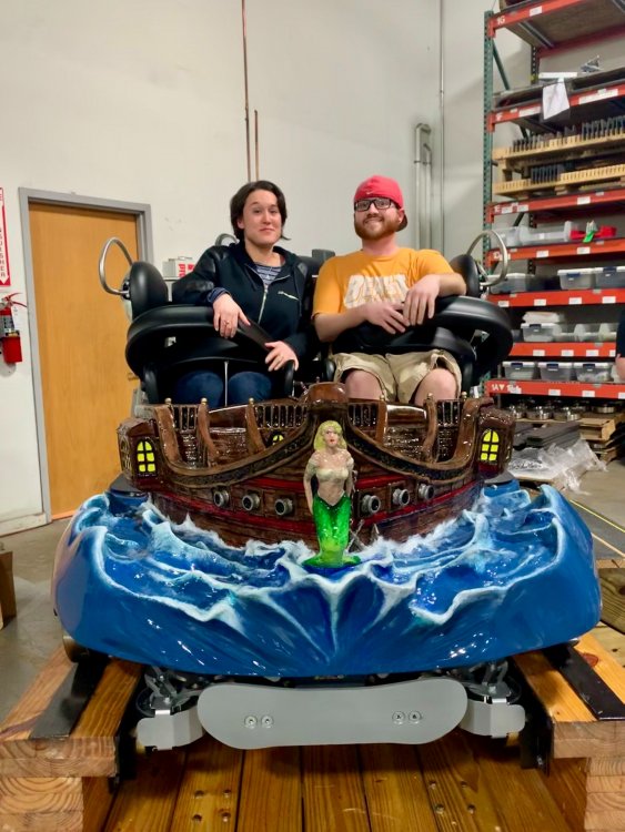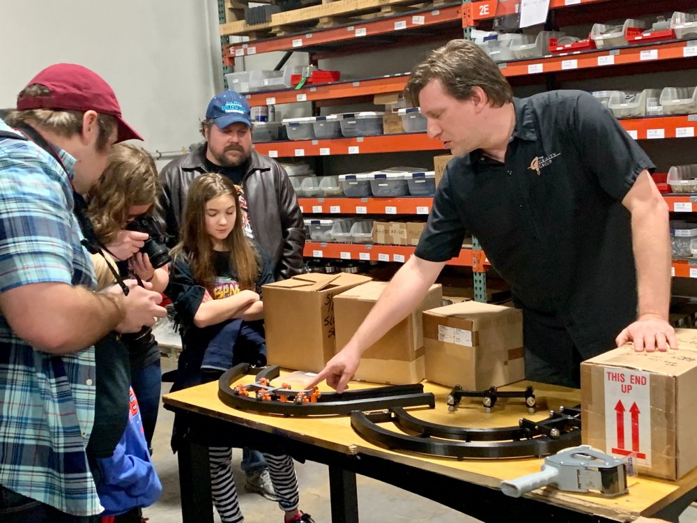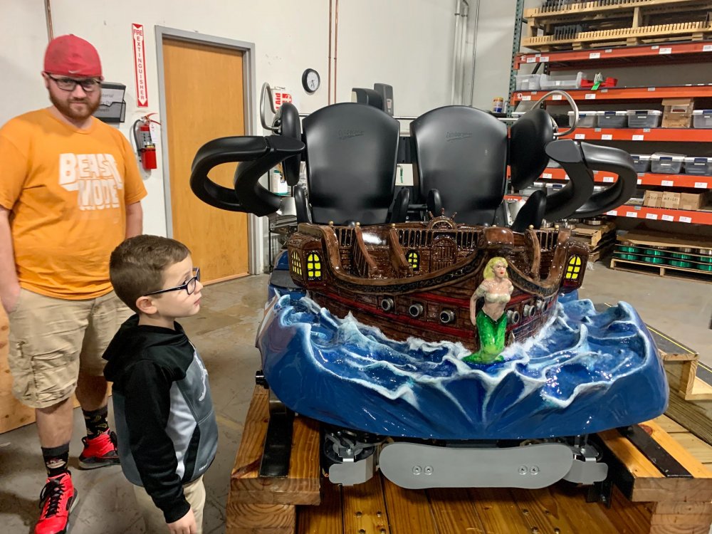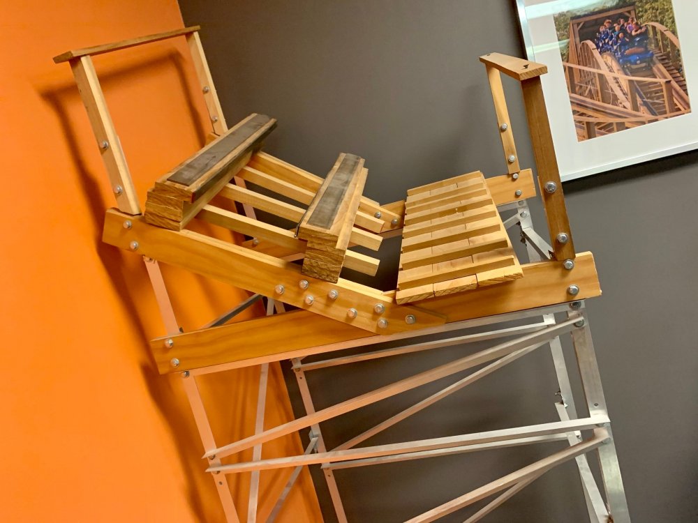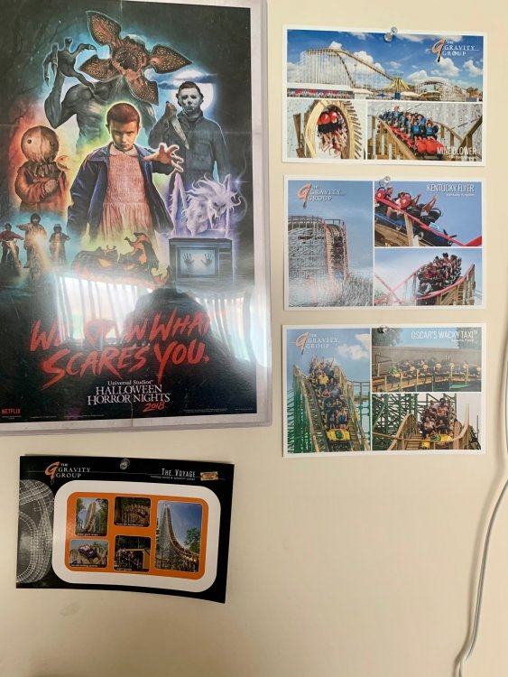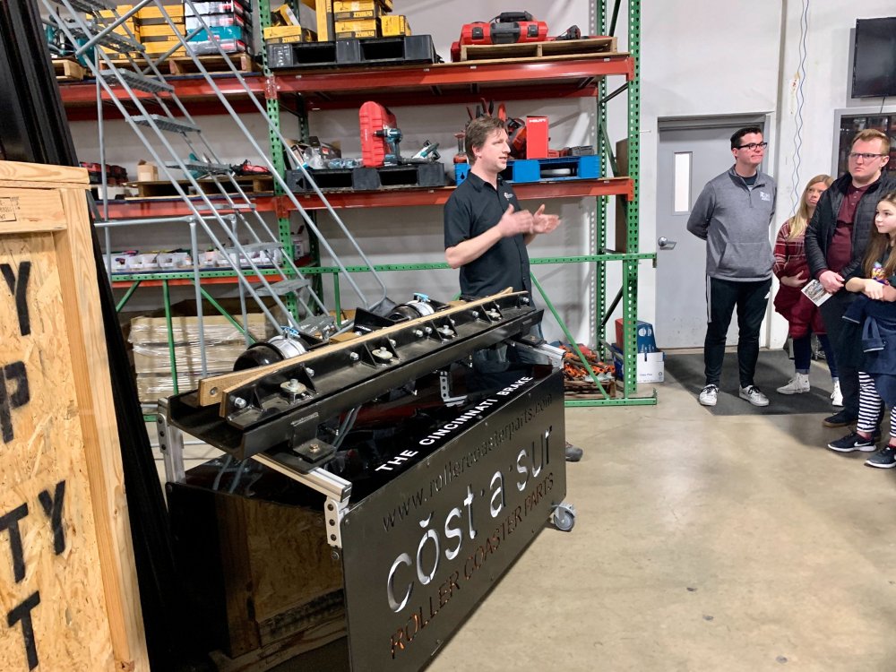 5. So I've been terrible terrible at doing TRs in the last year and around one year ago (January of 2020) I got to join FYE Coasters on a special tour of the Gravity Group factory in Cincinnati and I never got around to making a TR of it until now. Downside is I have a TERRIBLE memory so I'm really not going to remember much of anything they said or any details, but I'll still share the photos I took with you all! Front entrance! It was kinda hard to find the place. Picture displayed in the lobby. This is the dude who gave us the tour. I can't remember his name ATM but the wooden thing is a cross-section example of their wooden coasters. This was a front car they had designed to show at IAPPA in 2019. My friend, Adam, is an editor at FYE Coasters and the little guy is his son. The pirate car was really detailed! They also had a really cool dragon car but I didn't take any photos of it because I wasn't sure if they wanted us to. Adam and I testing out the car. I broke it!! (JK, it had velcro on the bottom and detached). Cost-a-sur was their side company that they had recently opened to sell coaster parts. They were also modeling the Cincinnati Brake. IAPPA 2019 crate I don't remember what these were called but IIRC they were to show how the wheels and upstop wheels worked. Anti-rollbacks and lift pieces. They explained how the chain dogs worked. Ahhh the familiar click-clack sound we all love! Close up Superrr close up! This was my profile pic for a while Me with our two tour guides and the (Timberliner?) wheel they gave us Here's the whole group who took the tour! We were all super thankful for the hospitality that the Gravity Group guys showed us! It was a really fun tour to take and of course we loved the swag! My post cards are displayed on the wall next to my HHN poster right now! I've been on three of these coasters.