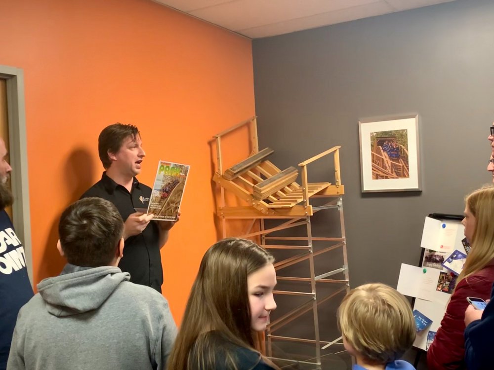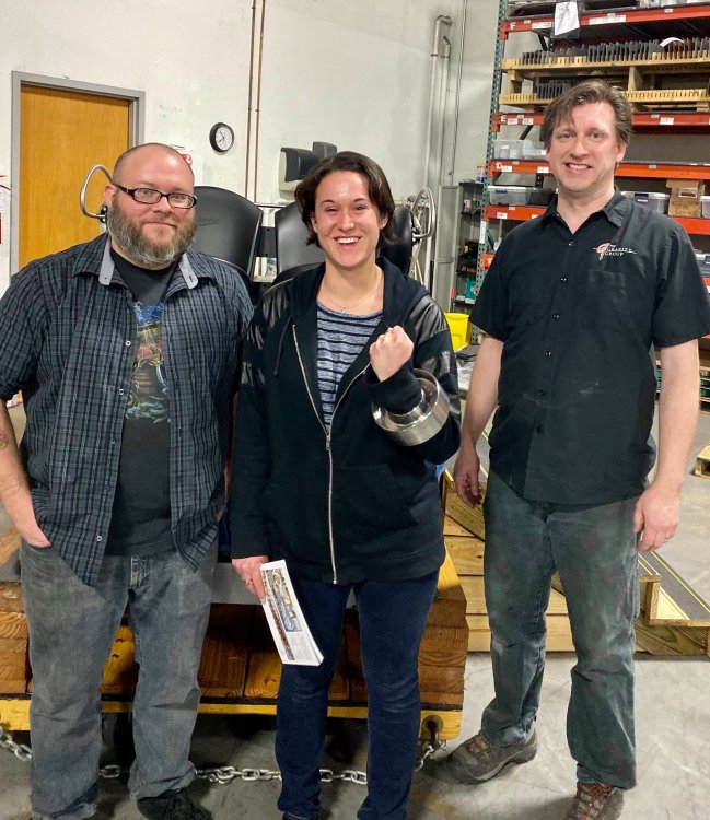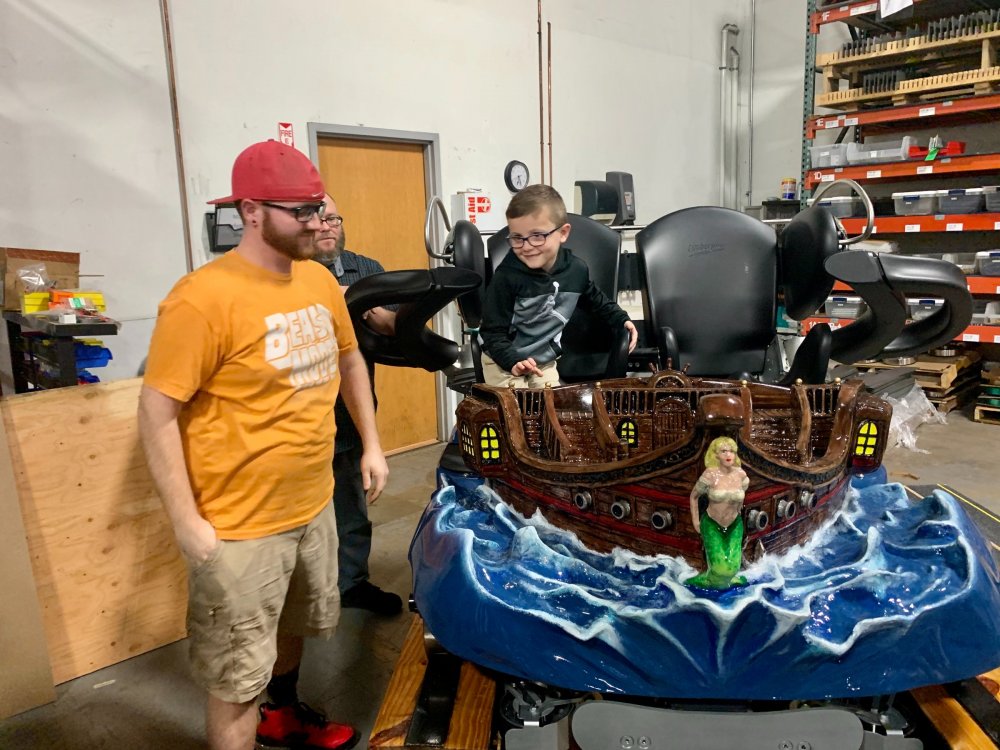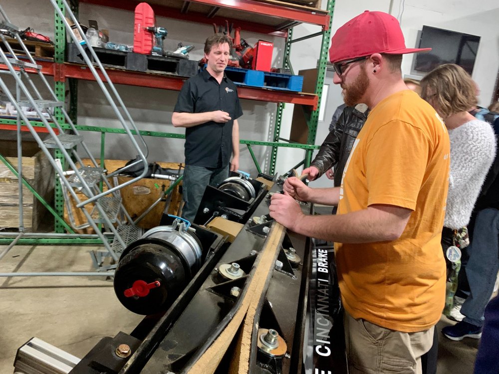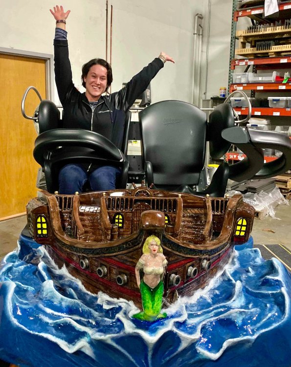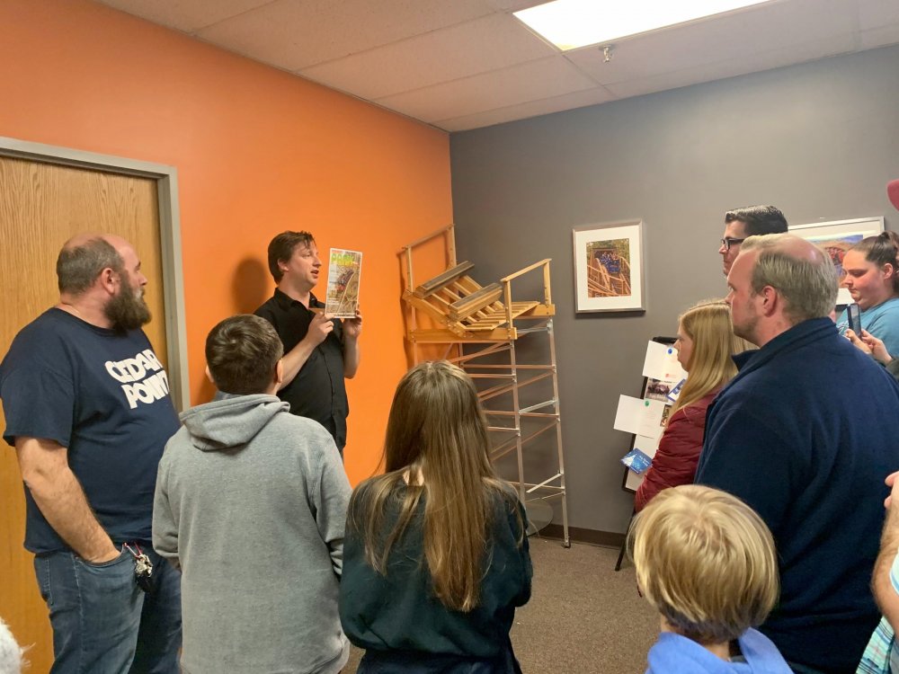 5. So I've been terrible terrible at doing TRs in the last year and around one year ago (January of 2020) I got to join FYE Coasters on a special tour of the Gravity Group factory in Cincinnati and I never got around to making a TR of it until now. Downside is I have a TERRIBLE memory so I'm really not going to remember much of anything they said or any details, but I'll still share the photos I took with you all! Front entrance! It was kinda hard to find the place. Picture displayed in the lobby. This is the dude who gave us the tour. I can't remember his name ATM but the wooden thing is a cross-section example of their wooden coasters. This was a front car they had designed to show at IAPPA in 2019. My friend, Adam, is an editor at FYE Coasters and the little guy is his son. The pirate car was really detailed! They also had a really cool dragon car but I didn't take any photos of it because I wasn't sure if they wanted us to. Adam and I testing out the car. I broke it!! (JK, it had velcro on the bottom and detached). Cost-a-sur was their side company that they had recently opened to sell coaster parts. They were also modeling the Cincinnati Brake. IAPPA 2019 crate I don't remember what these were called but IIRC they were to show how the wheels and upstop wheels worked. Anti-rollbacks and lift pieces. They explained how the chain dogs worked. Ahhh the familiar click-clack sound we all love! Close up Superrr close up! This was my profile pic for a while Me with our two tour guides and the (Timberliner?) wheel they gave us Here's the whole group who took the tour! We were all super thankful for the hospitality that the Gravity Group guys showed us! It was a really fun tour to take and of course we loved the swag! My post cards are displayed on the wall next to my HHN poster right now! I've been on three of these coasters.