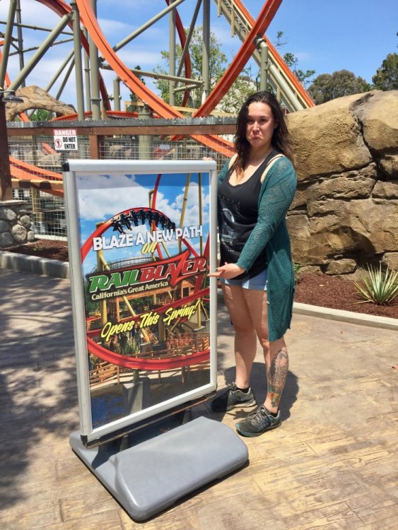 5. TR from the park yesterday: My Platinum pass had gotten stolen literally the day before, so I worried if I'd have any trouble parking, getting in, and using FunPix and drink pass. I actually managed to go through most of the day scanning my pass from my phone for everything. I hadn't been to CGA in a few years and was hoping that Railblazer would be open by now, but we still had a good time. Besides some school groups that we avoided for the most part, park was pretty dead. I think longest we waited was maybe 10-15 minutes for Grizzly but several rides were walk-on or one train wait, including Flight Deck and Goldstriker. This was my first time riding Patriot since the conversion. I absolutely HATED Vortex with a passion. I was skeptical about whether I'd like Patriot and well.... still hated it. Saying this ride is "better than Vortex" just means the trash is slightly less trash than before, the poo has been polished but it's still poo, etc. First ride I rode in the back left... big mistake. Basically from the end of the drop to the brakes I was struggling to prevent my ears from bashing. Ended up wrapping my arms around the top of the restraint to give my ears more cushion and punched myself in the face twice. Heard from a friend that maybe back left wasn't the best idea, try front and center. Nope. Still sucked. Still got punched. My friend, however, liked Patriot and thought it was less rough than Goldstriker (?????????). At least for me, I can safely say I do not have the urge to ride that ride ever again. Goldstriker was just as fun and maybe even funner than I remembered it... in the front. Back row has gotten a lot more jarring. It's not rough compared to lots of other rougher wooden coasters, but compared to what it was? Rougher. I like Mystic Timbers better (dat shed tho). I must say, though, CGA employees are really dumb when it comes to Platinum passes. Maybe they just don't see them enough? The girl at Goldstriker was super confused both times I went to get FunPix. My first ride I ended up having to use the kiosk because she had no idea what to do. Second time she said she scanned my pass correctly and obviously didn't because I didn't get that photo. Manager at the season pass center was also dumb. I showed him my pass uploaded on the KI app and he said, "You'll have to go to Kings Island to get a new pass." I told him my Platinum was actually renewed at Cedar Point but it didn't matter. He said if he gave me a new pass it would say, "California's Great America" on it and I wouldn't be able to get into the other parks. Um...what? Also, has it always costed $15 for a replacement? I paid my f*&$#@ arm and leg to buy this pass in the first place, and they're going to charge me for a new card? Overall, though, it was a good day. Weather was perfect. Funniest moment: when we were in line for Grizzly and I told my friend it was voted the worst wooden coaster in the U.S. Her, totally serious: "OMG really? That's awesome! I never thought I'd be able to say I rode the worst roller coaster." Railblazer looks even more amazing and stunning in person! The sign is now up I may not be able to ride it yet, but at least I can try out the seat. It's Spring, and no Railblazer. Sadface. :'( Such wow We got spit on by a giant worm and loved it! I had to take a picture of this drink machine, because this was FIRE. The juices were so scrumptious and tasty and not too sweet. All CF parks should get these! Such great flavors. Wish we had gone here first rather than getting sodas earlier in the day. Obligatory carousel shot. Still talked about riding it and never rode it. This was the one and only time I smiled on this ride....sorta Still a solid ride and one of the best GCIs! Getting ready for the pain