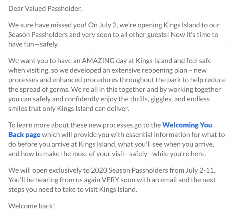 True, I'm probably jumping the gun with asking questions the park hasn't answered yet, I was just hoping that maybe they gave more info somewhere that I might have missed. Honestly, I'm psyched about the possibility to visit the park with less crowds. I don't really want to be around a lot of people right now either, so while these reservations and stipulations are a PITA, I'm still glad the park is implementing them. -