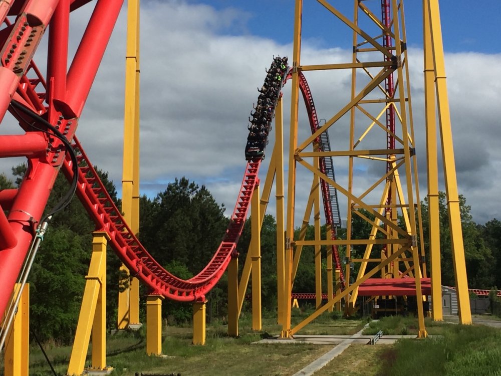 ^^ love your description of the two! I totally agree! ^We ended up staying at a Comfort Inn in Ruther Glen which wasn't too bad at all! Perception of the park: it is a very lovely park with some great theming everywhere. I really enjoyed the atmosphere, and it has a great rounding of coasters as well! I305: as previously said, I LOVED it. Probably my #2 steel. Volcano: such a unique and awesome coaster! Our second favorite ride in the park. Both launches were awesome and the rolls up over the volcano were pretty sweet as well! Dominator: my first two rides on it (when it was colder) it boxed my ears a few times and I did not enjoy it. I gave it another chance the next day (when it was warmer) and it was a LOT better and I can officially say it is my favorite floorless! I also chose to sit in the middle of the row after day 1, so maybe the boxing is an issue with the outside of the rows? Grizzly: Didn't know what to expect, but I liked it a lot more than I thought I would, since I really don't like CGA Grizzly. There was some good airtime in the back, I was actually out of my seat a lot! Anaconda: The location over the water really makes this ride for me. The ride itself wasn't the best, but it wasn't awful either. FoF, Stunt Coaster, Woodstock's Express, all similar to KI. Rebel Yell wasn't amazing. Ricochet, standard forgettable mouse. Avalanche, only my second bobsled (to Disaster Transport) and we enjoyed it, but not worth a long wait. Taste of Virginia: This was my first time at a theme park food event like this. Some of the food looked and sounded better than it tasted, but it was a nice reprieve from standard park food, and we loved the cocktails! I'm pescatarian (no meat except fish) so there were only a handful of things I could try, and a few of them I learned (after purchase) sneakily had other meat in it. For a full vegetarian, there was probably only a few things to eat. I would have liked to see a salad or vegetable dish, everything was carbs and meat. On to the pictures I took! First day, first time at the park ever! The entry plaza is gorgeous, just like the one at KI. First coaster: Grizzly. I actually liked this one a lot and thought it had some great airtime unlike Grizzly at CGA! It was overcast a lot of Saturday, which probably helped in creating very light crowds that day! We had to walk past these multiple times before we actually got to see them sing Some of the theming in the African section, I loved this area! Is that a natural horn or are you just happy to see me? At least we don't have to stare at a webcam for months to see this one... The "better put your phone in the bins if you ever want to see it again" coaster/ "staring at murky water during slow inversions" coaster. There were so many waterfalls around the park! I loved them all. We come in peace! I seriously had a nightmare about this thing that night The unfortunately trimmed hill on an amazing A+ coaster! Crab Mac n' Cheese, Flounder Corn Chowder (which had sneaky ham in the chowder), Seared Oyster Cake with Bacon Aioli (not that great to me. would probably have been better with the aioli, but I don't eat bacon), and Fried Chicken and Creamy Dumplings (D. enjoyed the chicken and I enjoyed the dumplings). The winner of the event hands down was the Crab Mac n' Cheese! We both loved it. Belmont Distillery. Fruity drink, Whiskey and Coke, Moonshine with apple juice, American Mule (Moscow Mule with Moonshine). These cocktails were not only good, but STRONG! We loved them! I was beyond excited to get on this, my #200 coaster overall and second ever Giga coaster! The G-forces and whipping transitions are just insane! Yawning or impersonating the skeleton? I really enjoyed Crypt! Fire effects weren't working, though. Ele-selfie Another pretty waterfall Dominator at sunset I took a crap-ton of Dominator photos. It's a really photogenic coaster and there are a lot of great vantage points. Like Kings Island, Kings Dominion really comes to life at night Clock flowers actually tell the time! Until next time, Kings Dominion! Volcano, The Blast Coaster is a good value Shenandoah Log Flume was a lot of fun! Fried Winesap Apple Pie, Shitake Turkey Meatloaf with Country Ham Gravy, Peanut Soup with Crispy Peanut Coated Onions. Out of the three, the pie was the best and the other two were just okay. Crispy Crab Cakes. Very good, but small for how many tickets they cost. Boo-Blasters Best "be really careful not to drop your iPhone" photo. Hurler being deconstructed Someone must've really wanted a Magikarp! Peanut Butter Fudge with Glazed Roasted Pecans Bell Isle Craft Spirits. American Mule, Citrus drink, Habanero Rasperita, Coffee. They were all tasty but none of them were very strong. They didn't make the drinks in front of us so I kind of feel like they skimped on the alcohol. Didn't get to ride this. I saw it testing, so I waited. Didn't make it over before the first group was already strapped in, so I waited for the second. Well the first group got stuck for about 10 minutes. I saw the mom of one of the girls stuck crying hysterically. Then they dropped and were all given free exit passes. I SO wish I had been on that first group! After I found a way to avoid the headbanging, I LOVED this ride! It's my new favorite floorless coaster He looked like this in every single Volcano photo we had! Rare hands-up photo of me. It hurt too much to keep my hands up during the ride, the G-forces were too intense! We made sure to weigh down the boat so the guy in the front got really wet. We really made use of my FunPix pass D. tried to force me to keep my hands up