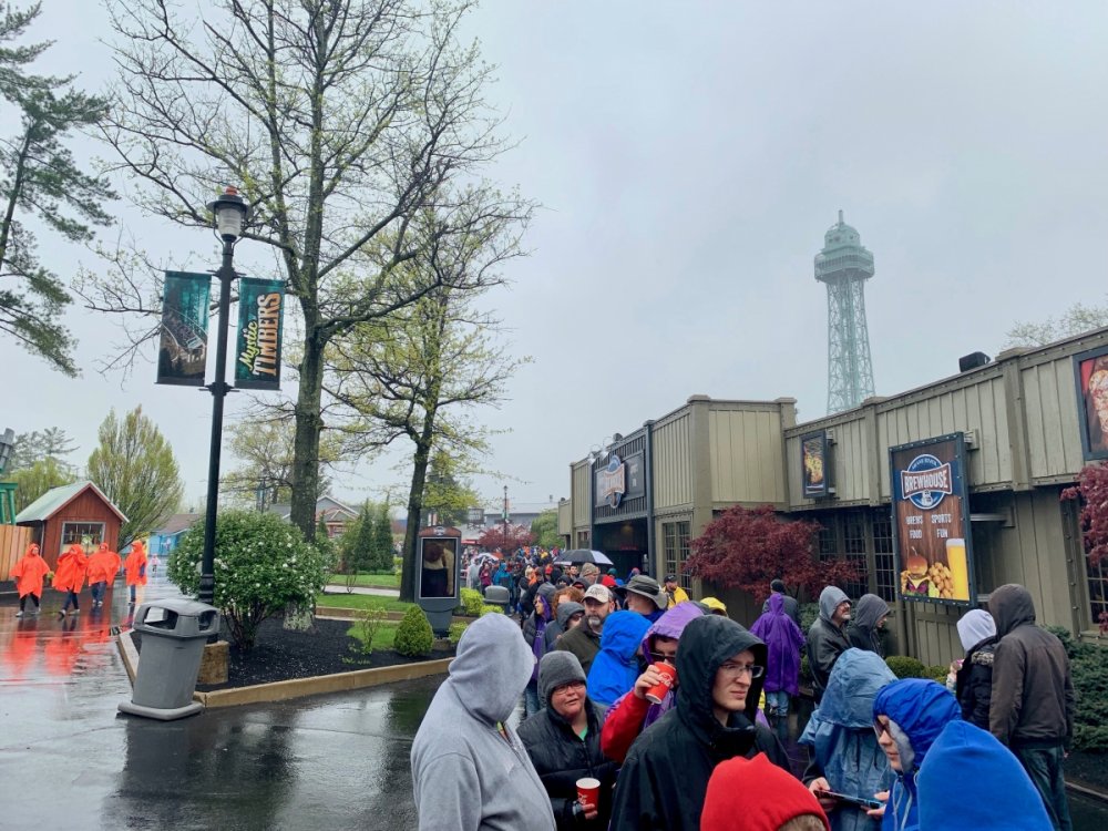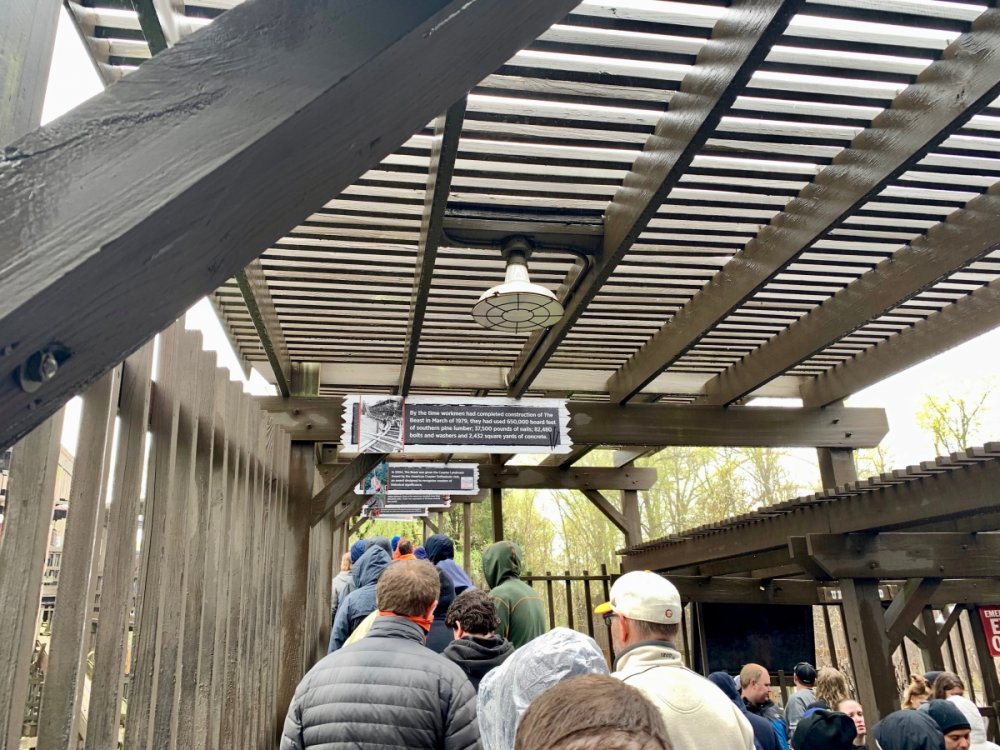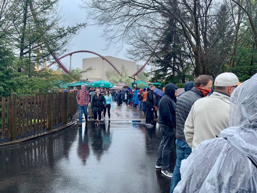 Part 2: Opening Day and the Quest for Beast T-Shirts I have a lot less pictures to show for this day, but the story is insane. After I left the park on Friday, I drove to Liberty to meet my significant other who was marathonning movies at the Cinébistro (nice movie theater that sells food and drinks). He had already watched the one movie that I really cared to watch, Pet Sematary, but I made it in time to catch about half of Hellboy and all of Shazam with him while I waited for my friend to get off work (circa 12:00pm or later) so I could go to her house and spend the night before going back to KI the next morning. She lives closer to the park than me and she was committed to get to the park early with me. You see, for Beast's 40th anniversary, the park announced on social media that riders on the first 40 trains of Beast would get a free T-shirt. We did the math and decided we needed to arrive at the park... early as f**k. We arrived at the park a bit before 9:30 after a night of me not sleeping hardly at all. 9:30 was when the park opened to Gold Passholders and we were in a long line at the entrance to get in but still felt pretty confident we were going to get to Beast in time to get a shirt. When we finally got in the gates we followed everyone over to Beast and immediately noticed a HUGE line starting from the entrance of Diamondback and heading toward Beast. I had my friend hold our spot while I went to ask someone what the line was for. Basically, I was told you could wait in this line until 10:00 to get your chance for a shirt, or you could go ride Beast until 10:00 at which time you would have to join the back of the line to get a chance for a shirt. The decision was simple. We would wait. This line stretches around the corner and to the entrance of Beast We could not see the back of the line from where we stood When the park opened, we were here. The line for Beast T-shirts went on as far as I could see both ways. After waiting God knows how long we were almost to the entrance and I snapped some cool photos of the new footprints. Now, as we passed the photo booth we noticed the image number ended in 23, so we figured 23 trains had already gone, and we still had to wait through the entire queue of Beast and hope we somehow made it onto the first 40 trains. Being math majors, we tried to count people ahead of us and figure out which train we would make it on. By now, it was after 11 and quickly nearing 11:30. Having little to no sleep we were doing a terrible job at doing the math and I'm sure the people around us must have thought we were crazy or maybe that April 20th was affecting us a lot, but my friend estimated we would be on train 47 and I said I still thought we would make it on the first 40 trains. By now we're really starting to sweat as we see more and more trains go by and people getting their t-shirts. We really didn't want it all to be for nothing but we held onto the hope that maybe, just maybe, we would still make the first 40 trains. We were still trying to do math and it was after 11:30 and everyone around us were all trying to figure out if they were going to make it, but the general consensus was that we weren't. By the time we made it to the station and opted for the left queue (front half of the train), there were miraculously still T-shirts being passed out but every train that went by meant we were getting closer to train #40. By now we had figured out what you all probably figured out a few minutes ago about the train 23 picture we had seen—that number likely included trains tested in the morning as well as the people who had decided to f***it and just ride during early entry and forget the T-shirts. That meant It was nearly impossible to know how close to 40 we were but we hoped the number of pre-10:00am trains was working in our favor. Every time I saw the employees pass out all the t-shirts in their hands I would think, "that's it," but then they would mysteriously procure more from some hidden box somewhere and my hopes would rise again. Finally, finally we made it to the greeter. "How many?" "Two." "Row 1 please." I couldn't believe my ears for a minute. Did we just get randomly placed in the best row of Beast? And the T-shirts still haven't run out yet so we're somehow still within the first 40 trains (or they lied and actually had more T-shirts than that)? We counted it down. "Three more trains ahead of us. Do they look like they have enough shirts for 3 more trains?" Finally, we got on the coaster and so far so good, they hadn't run out yet, and we're in the front row, which makes it even better. It's not a night ride but hey, it was not raining. Blissful not-so-early-anymore first-coaster-of-the-day-and-probably-the-last possibly-within-the-first-40-trains-in-Beast's-40th-year front row ride. We got off the coaster and snatched our orange T-shirts like we've never snatched an orange T-shirt in Beast's 40th year before (well really, we hadn't). I was gloating to my friend that I was right, I was the real math wizard because we did make it within the first 40 trains of operating season and managed to get a shirt. She reminded me that our initial guesses hadn't included the early trains and she still thought we were going to be train #47 and maybe there were 10 trains before 10:00 that morning. At that point my brain was fried and I was done trying to figure it out. We got the shirts and that was the only reason we had come so early and went through all of that. Went to look at our photos and guess what? We were #47. So I congratulated my friend on being the math wizard even though we were both right in our own way. How long did we wait? 2 hours. We waited 2 hours. More if you count the time before 10:00am. We had been in line since before 10:00 and it was now after 12:00. Here is a picture of me after waiting in line for Beast for more time than I had slept in the previous 24 hours. Around 12:30 we were chillin and wearing our new shirts and so