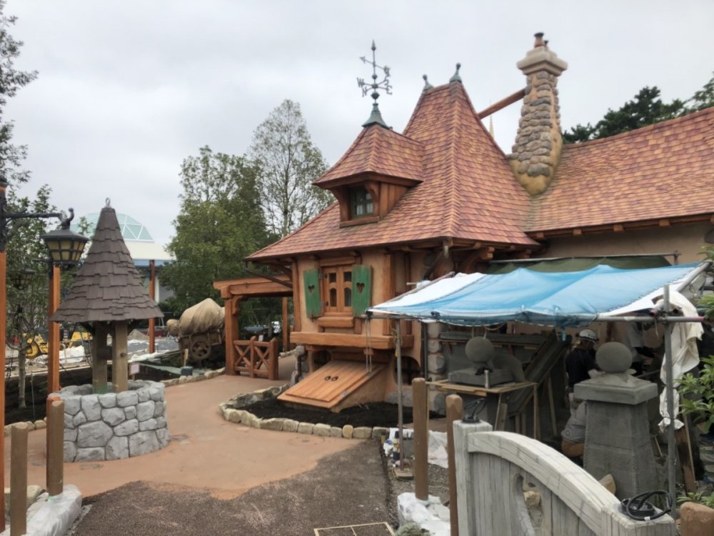 Found a couple of new (to me) photos on the net. One shows more of Maurice's Cottage, where Fast Pass machines for the Beauty/Beast attraction, should be located. The other is of a new Toontown sign that was just revealed, taking the place of one mounted on a wall. This has apparently provided photo ops, too. Yay Mickey! Looks nice, that sign does. Thank you to Spencer Lloyd, who took these two photos. -