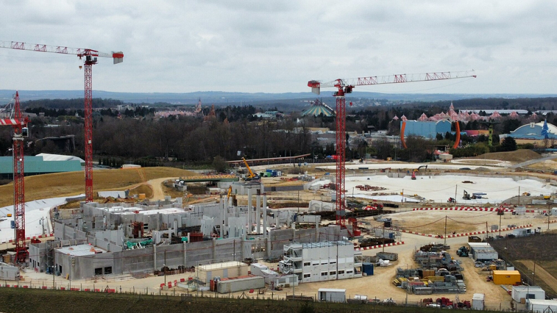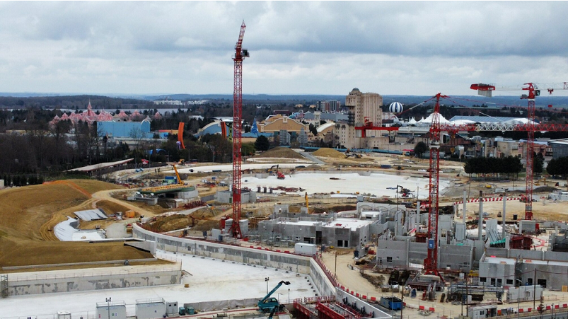 Found a couple of new construction photos, of the new Arendelle attraction area in WDS. Thank you DLPrescueranger for the great photos! A view beyond the lake that will be the center of this area. And the rest of the Studio. And I see....BALLOON! Looking real good, there. -