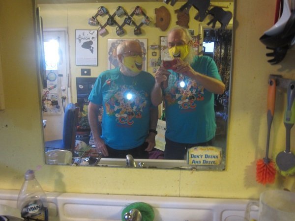 11. Here's me and David, along side two of the Cirque du Soleil's ALEGRIA cast. Celebrating our 50th Anniversary (April 22, 1972) as well, that evening! It was all awesome! ... In our snazzy, TDL 30th Anny shirts! Taken on Earth Day (Friday evening) last week, before we saw the show.
