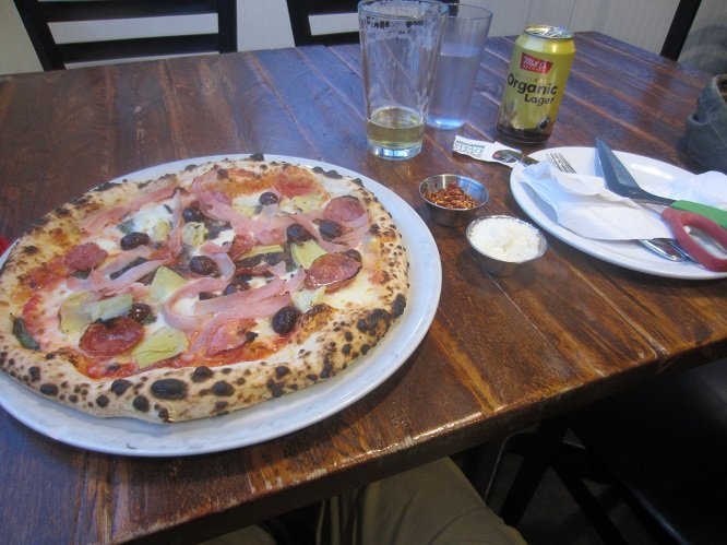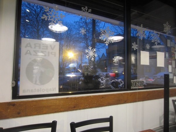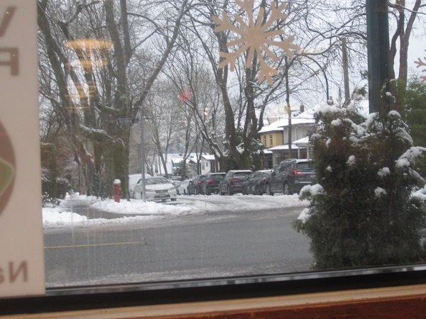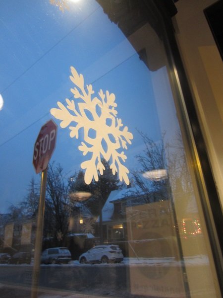15. First Wednesday of The Year, last week! And I totally spoiled myself with the most $$$ pizza on the menu .... and it was glorious as usual, heh. We got snow over the Holiday Weekend, then it's been hanging around, and being added to, every other day or so. For our side of the country, we've had enough. Period. Time to get all rained away, now. Yep, it was much like this, but thankfully main roads could be cleared and salted, etc. Good for city works! Looking west, down William St. We got a lot more snow, a few days after this visit. Right....pizza! The Capricciosa. This had a lot of stuff on it, and it all worked, together! Lots of chile oil on it, too. I even added some parmesan and chile flakes. Threw them around, here and there. It was good. Italian Winter decor. One last snowflake.