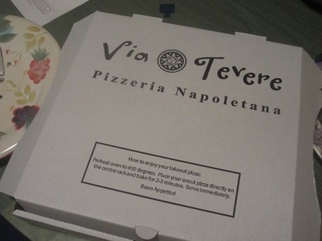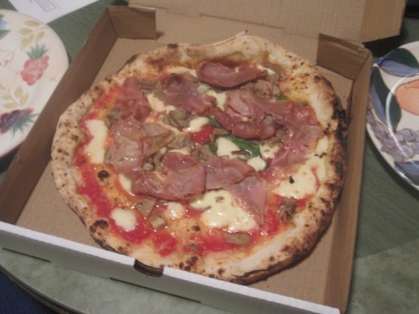 8. Did things a bit differently, yesterday. I had the salad that David and I had before (w/crumbled prosciutto on it?), AND two of their meatballs! And it was one of the best Protein Salads I'd ever had. Truth! I definitely want to do this again, with other salads they have. But - I also put in an order for the Prosciutto et Funghi pizza (see above post) to pick up later. We live two houses away, once you cross the street, so this was an easy pickup order. The box. And we didn't need the re-heat instructions. Was still very warm when I picked it up. Voila! Another prosciutto and mushroom pizza! And was just as good at home, as at the restaurant.