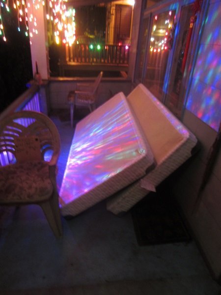 Today's photo comes from an "Unordered Gift" we received, on our front porch...... We did NOT order this pair of single bed mattresses! They just appeared over an hour ago. I was at the back of the house, with the radio on, so I didn't hear any sound whatsoever. We found a tag on one of them with the name of the company that sells them. But no delivery address anywhere. We can't do anything until Monday, with the apparent company involved. Ho ho ho.
