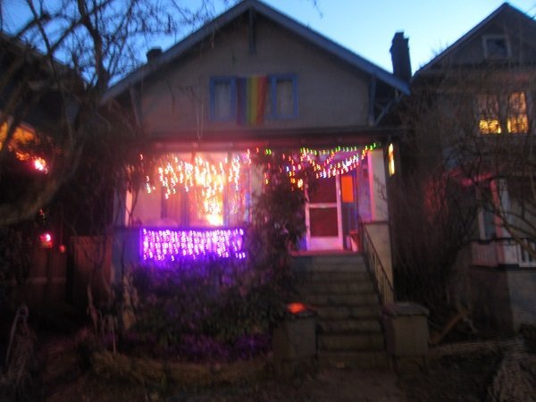 7. "Several Years Later......" I wanted to post a photo of what we've done this Holiday Season, on the front of our house. Took me a bit of time to find any thread that I didn't have to repeat. Found this one. Jingle! We got a set of purple lights to drape across the front railing of the porch. Worked pretty good, Yes? EDIT: I didn't realize there was an actual year in the topic's title. Ho ho ho. A touch fuzzy, but you get the idea. A better pic will be taken later on. I hope.