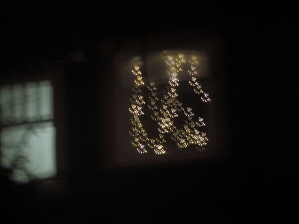 6. And I have to add this .... Our back yard (and back of the house) looks towards an apartment bldg, painted a not-great sort-of blue colour. Anyway, one of those living opposite us, put some lights in their window. And really, we're the only ones who can actually see it, outside! So nice of them to do this, LOL. My night photo skills aren't great, but it still looks .... interesting. A closer shot, and it turns into something else, LOL. Happy Holidays, Everybody!