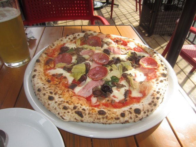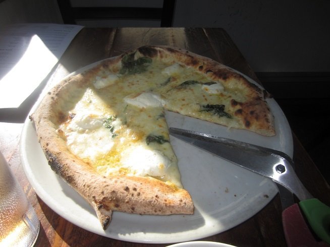 "A Pizza Epiphany" I went back for my usual Wednesday pizza meal. Came out of it, with a great respect for Olive Oil-Based pizzas! It's the truth, I have never had a pizza without a tomato sauce base on it. Till Wednesday. And it was awesome! Of course, all the toppings made it extra special, too. Certainly worth repeating, eventually. For now, I have four more of these styles of pizza to enjoy. With a good Pilsner or lager beer, too. Not every day you see a fire truck, lights blazing, in front of your house. Couldn't see much activity, until I walked past it, up to the pizza place. Turns out "something was happening" across from us. No ambulance showing up, tho. Then, the truck took off. Fini. Hmmm. Which side to choose, this visit? I went with the table on the right. This week's choice was the Filetto. And next week's pizza is below it. "Four Cheeses." Future yum. A nice draught Pilsner beer, with a "sidecar" of water. View of our house. Check. View of Victoria Drive, looking south. Check. Oops! Nearly forgot to get a shot of this great pizza! I realize that this one still has tomato on it. Just not as it's base. All finished! And looking forward to more of this kind of pizza in the coming weeks.