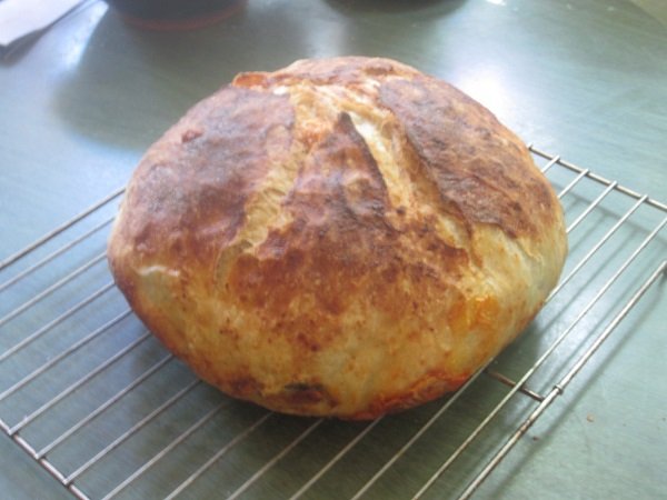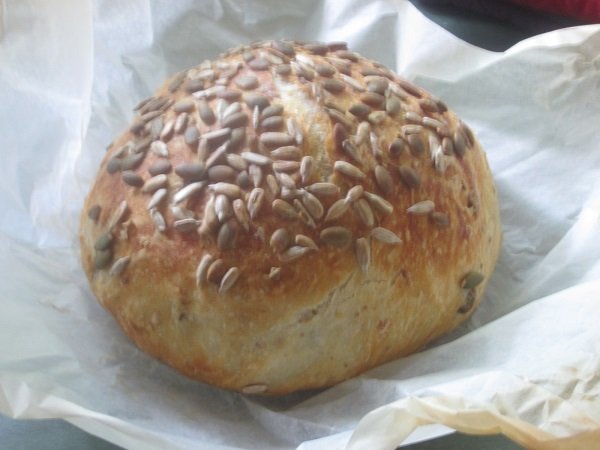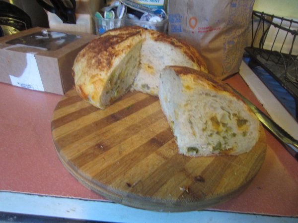 Been awhile, but I've made two new loaves since then... The first one is a repeat of the Cheese & Jalapeno Loaf I've made before. But I 'cut the cheese' (HA) into much smaller pieces than before, and really REALLY sliced the jalapeno pepper thin, still w/o seeds as that's too hot for my tastebuds. It turned out great, and we got through all of it in time. Then recently, I made what's called a 5 Seed Loaf, which consists of (duh) five seeds in it: Pumpkin ~ Sunflower ~ Sesame ~ Flax ~ Chia. Yes. "those Chia" seeds. Like one's old Chia Pet. Came out great, but - tastewise, I didn't taste much, if any, of the individual seed tastes I thought I would. Hmmm. Bread came out alright, but the Olive loaf and Cheese/Jalapeno loaf still top this one. For now. Looks great outside, but pretty meh inside, IMhO.