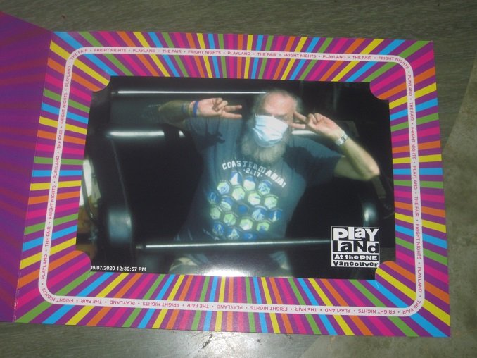 ^ Last summer, when Playland was open here and there through the months, I found that wearing a well fitting mask was no problem. Speed presses it against your face, so that's not a big deal. As long as it fits well around your nose and chin, then you should be fine. I have no idea what inversion coasters do to masks .... anyone out there to advise on those and any other bigger coasters? And by the way .... yes, there will be masking falling off, because don't have them on properly, and/or don't leave them alone. Mine held on! Taken Sept.07, 2020. Looks wierd, but it still works okay.