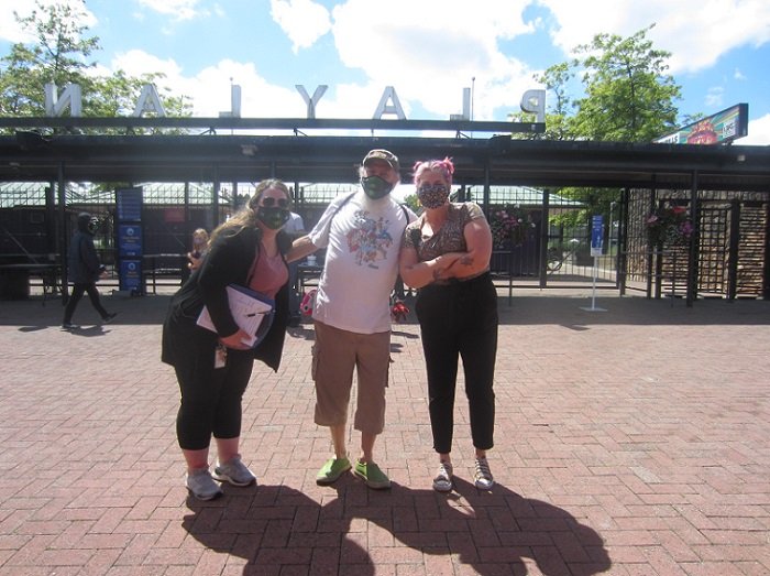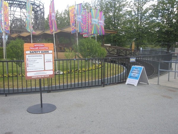 So Opening Weekend has come and gone. Friday evening was wet for awhile (I was told); Saturday was sunny with a few clouds here and there; and Sunday... Sunday was wet, then stayed overcast for the rest of the day. I stayed less time on Sunday, than I did on Saturday. Between the two days, seven rides were down, including Coaster. It could be getting enough staff for everything. Or breakdowns need servicing, parts are needed, etc. etc. etc. What ever the case it was sad to see so many rides closed. Hopefully everything will improve as the summer moves along. On Saturday, I was planning to eat something at the White Spot "Triple O's" place on Saturday. But decided not to "spend that much" at this time, even though there was only a few people ahead of me, if I joined the queue.. On Sunday? There was over 20 people in line for only one ordering window. I skipped that day, too. Gladiator was still OMG-ing me, with so much force, height, intensity. So different a cycle for a few years ago. I love it! Because of it raining so much on Sunday, most of the gentler rides, with covers (like the Carousel, West Coast Wheel) had really long lines. So I skipped them, even though I rode them on Saturday. On Sunday, I did get something to eat: Mini Donuts! But no pink or blue icing ones, as advertised. Only "maple glazed w/sprinkles". Fair enough. I took a six pack home with me. Future visit plans are for this Friday, which they are running as evenings at the park. So, I hope to get some good night shots with all the lights on! The flag at half-mast is for the 215 indigenous children's bodies found in a grave in Kamloops, BC. The PNE reported it will keep the flag that way for 215 hours - one for each child lost. Sorry to start out with a downer, but hey - life sadly happens, some times. A sign of many more closed down, to come. <sighs> Looks like they changed all the banners there. No people shots on Coaster, as before. I miss the photos of the Buddhist Monks on Coaster; and the Vancouver Scottish Bagpipe Band on it, too. And I did, eventually. What's this? What's this? This was opposite the Haunted Mansion, which is closed for obvious reasons. A wall of wood. The other end of it. I guess we'll find out, eventually. Bug Whirled was running great on Saturday. Then it wasn't, on Sunday. Time to ride The Wheel. Meanwhile .... I keep wondering if Covid-19 has killed the plans for a new coaster. I hope I'm wrong. The Twins are "under cover." Obligatory Beast shot. AtmosFEAR's running fine. Gladiator never went this high a few years ago. I love the new cycle on it! This are the "New Enhancements" they advertised for Enterprise. Plants and a sign. Awesome. Still runs good. Where The Scrambler usually sits. Not this weekend. But my B-Day is in March! Now, is this a boy's or a girl's name? I have no idea. On Sunday, this was The Only Coaster running. Kettle Mine Coaster. At least adults can ride this, too. How White Spot advertises all of it's food. The prices have gone up, but not a lot to complain about. The former Adventure Golf is now Sweet Escape Mini Golf! Here and there, candy representation. And just before leaving on Saturday, I ran into Roxann (Director Playland Operations) ..... and Christina (right). Christina could be Roxann's Assistant,. but I don't really know. We talked about Coaster re-opening ("couple of weeks") and general park stuff. And then my day was done! Coming back the next day for a much MUCH shorter visit. -