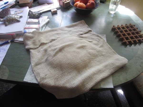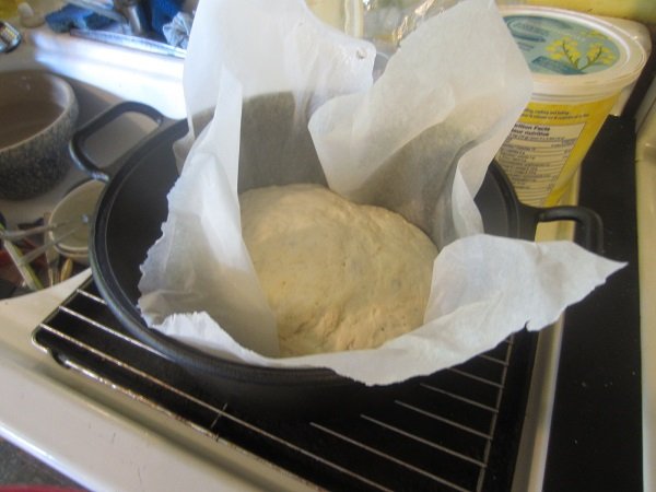 Bread #3 Alert! I decided to "jump the shark" as it were, and create my third loaf of bread, at the end of this month. Meaning ...... tomorrow. Here's hoping the "third time is the charm," etc. What Loaf #2 looked like, in it's "second rising."