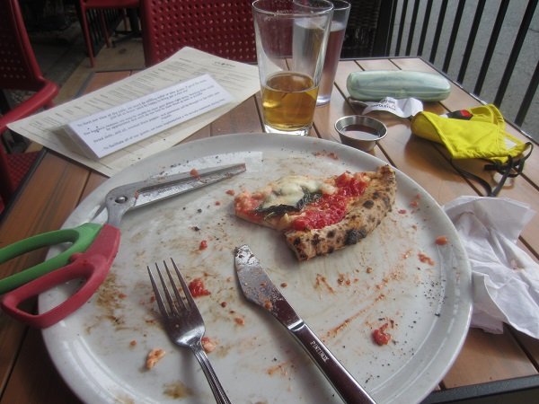 15. Actually, before she brought the pizza out, she asked me if I wanted it cut, or to "cut it myself?" I decided to cut it myself, expecting a "pizza cutter wheel" ..... and I got the scissors. And it worked great!