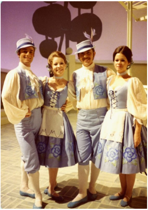 I just ran across a CBC Television Special, I was a dancer in.... it aired in Dec.1975! I was 22 at that time. Called "The World of Ivor Novello" it was a look back on his career and music, especially operetta musicals. Had a few well known (at the time) opera singers in it, and all of the dancers (& choreographer) were people I knew and had danced with in a lot of musicals produced by a good number of amateur theatre companies, at the time in Vancouver. Here's the photos with me in them. And don't judge on the tights and slippers in the last pic! It's European! If you want to read more about this special, and see other photos, here's the link to it: http://www.stationbreak.ca/photo_gallery/index.php?SCRAPBOOK-THE-WORLD-OF-IVOR-NOVELLO-1975-272 BTW, these shots were taken, in between tapings. It was also re-aired in Australia a couple of years later! And I got a small residual cheque for it. Cool! That's me in front, in the lighter blue jacket. Luxurious costumes they were! All of us, on the stairs. With Judith Forst at the top. In Dance Ready Mode, with our Choreographer JEFF HYSLOP standing behind Mary Costa, checking our positions. (o; Us dressed to dance something "Tyrolean". I forget which European country we were, lol. My partner for the whole special (right) Lorraine King, was my choreographer for the musical "Seesaw" when we did it in 1976. She featured me, and I loved doing it!