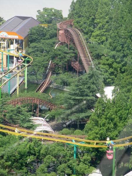 It's amazing what "a little tree landscaping" here and there, can transform any ride into an adventure of it's own. Jet Coaster itself was really nothing special to me, especially with those not-very-exciting dips in it. But I still really enjoyed the ride, with not being able to see all of it's track, ahead of me. All trees. Everywhere! And - I would kill to see what they could or would do for a "Halloween layover" of it, with spooks and ghouls all around in the forest, there. That would be great to ride thru. Jet Coaster's in there.... somewhere. TPR 2013 Japan Tour. -