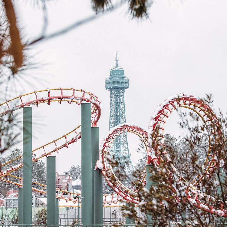 Theme parks and coasters in the snow