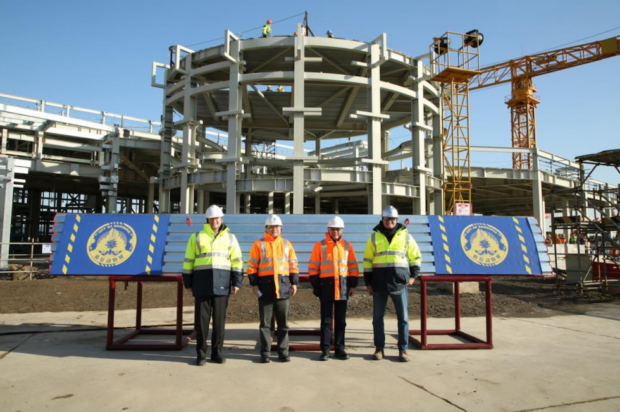 Shanghai Disneyland just posted photos of the "topping" of the massive show building for ZOOTOPIA's main attraction. The final steel roof piece was signed by officials of the Resort and those involved with the building of it. By the way, since it's rumored to a be a "police chase" of some kind, this may be the main entrance into the attraction.... ....The Zootopia Police Station. Just a guess. The all-important officials' group shot, before signing the roof piece. Lowering the signed piece into position. Photos from Disney. What the Police Station looked like, in concept artwork c/o Disney. -