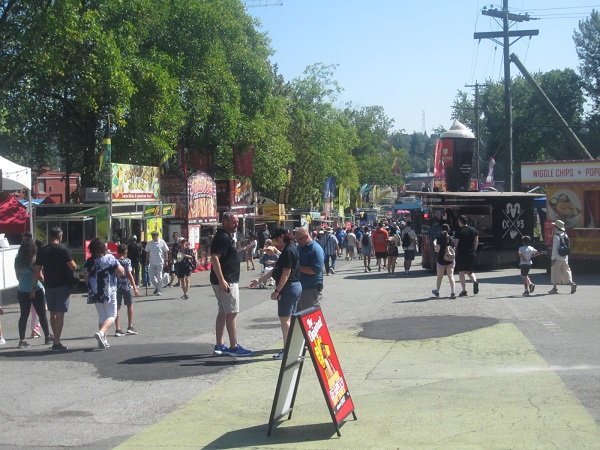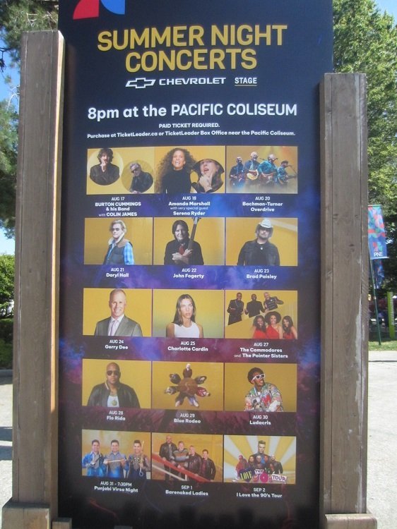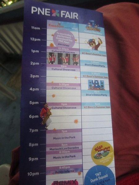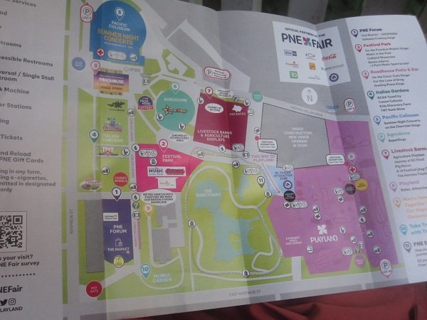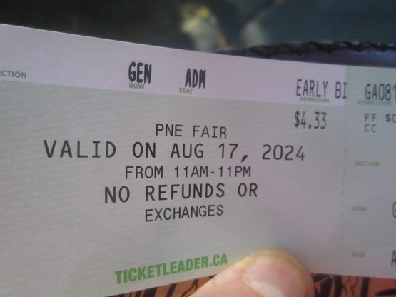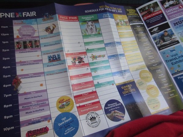Opening Day on Saturday wasn't a big deal for me, compared to the crowds coming in. The only things I wanted to do was 1. Getting my Two Weeks' Pass to the fair and 2. Don't go into any buildings (except a bathroom, if needed) and just check the whole site out, to see where everything was, etc. Especially with the new amphitheater being built (and not open until 2026), a lot of space was lost onsite. But it was packed with food trucks, the nightly Concerts were moved to the Coliseum and the Super Dogs show moved into the Agrodome, which usually has horse events, knights jousting, etc. Not this time, sadly. 2024 The main entrance to The Fair. But I didn't enter here. After walking roughly 15 minutes to get to the north end of the park, this is where I was to pick up my PNE Pass. It took nearly 20 minutes to figure it all out but.... I got 16 separate tickets, one for each day of the fair. A bit much, but hey - I can go every day, now! The BLUE GATE entry into the PNE. Where I went in, after getting all my fair tickets. Then you travel by a bunch of cars on display, for sale. Not all the 'huts' were used, so I'm hoping they all get used by my next visit. Crafts and stuff, there. Where the Summer Night Concerts are taking place. Who's playing when. If directions are needed. Where the PNE Prize Home is usually located to check out. Apparently it's already in it's location. Langley, Surrey, Coquitlam? I forget, but I wouldn't move there, myself. Just displays set up. Opposite the Prize Home display. A nice, random place to sit and eat, rest, drink or ....? I can't remember a year where this hot tub business wasn't at The Fair. So, here they are again! Super Dogs, yes. Horses and knights jousting, no. Then I saw this. Great! A BBQ food truck, found! Then I went around to the front and .... Woo hoo! Prairie Smoke & Spice has always been one of our fave BBQ places. So we'll be there, soon enough. I need to take a movie of this. Constant movement, really nice to watch. The centre Fair Festival stage was moved to the other side of where it usually was. And mmmmmm, all those red and white Adirondack chairs to lounge in! Found another BBQ, this time in an actual truck. "Food Truck Way" with everything you could imagine, to eat. I don't think these farm buildings have changed since The Fair began! Over 100 years ago! The route to get to Playland. And you can get a different angled look at all that dirt being moved around, for the Amphitheater. They have a trackless train that travels all around the Sanctuary, which is a designated green space in the fair. The kiddies should love this, hmm? It's really cool that the PNE has two haunt walk thrus to do. And they have 'such a ticket deal' to do both! With less space available, less extra rides were brought in. This is two of four rides extra, to Playland? By Coaster, this is where I get my $1 popcorn refills. $! pop refills are just a few steps from here. So to start the Corn Dog Ball rolling, I stopped here before leaving the fair. The Coaster line must be at least 2 hours long, now. I dread to think what ThunderVOLT's line is like. A foot long corn dog. It was good, as I expected Coaster Dogs' corn dogs to be. One of the many Drinx Huts (Drinx?) onsite. Right beside Coaster. And out I went..... What you're given every day, you go to The Fair. Schedule of all the free entertainment available, along with the (paid) Summer Night Concerts. Flip side has the PNE Map on it. Noted. I hit the fair again, tomorrow. Till then, Cheers! -