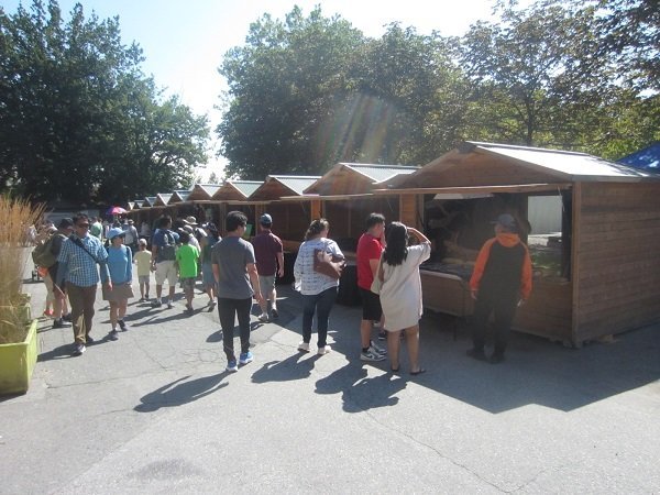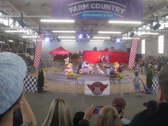 Yesterday, I went to The Fair, and just toured around The PNE Barns. These buildings have been around for a long, long time. And they are a great way to introduce kids and city families to country life, etc. Unfortunately, since this was a Tuesday, with gray skies overhead, the crowds weren't there as much as the usual weekends. So I believe a few of the scheduled demos didn't happen, just because of the lack of .... people! Going in the Main Gate of the PNE. David and I will get to this place (i.e. shopping) next week. BC Transit had their info. display open.... ....Including a nice big double decker, although I don't know where this would be running in the system. More sales huts along the walkway. Metro Vancouver's annual display and info. area. "Meet Pee & Poo" .....? Not sure if I want to, lol. Noted. One huge Adirondack PNE chair.... Another huge Adirondack chair. The others are over near The Barns. Then I saw this. "Deep fried Giant Squid"? "Eel"? Um ....no thanks. I'll pass on this. Tuesday's Corn Dog came from Corn Dog King, an annual regular to The Fair. IT was good. The batter was light and a bit sweet. The hot dog itself was fine, and cooked thru. And I hit The Barns. There were a number of tractors on display, here. Kind of vacant, it was. Not busy with crowds, as it probably is during the weekend. Moo. Not sure what this was about. But it looks like I wasn't going to find out, anyway. Pony rides for the youngsters. A TPR Mascot having a snooze. Two goats and a lama. Well, I hope this is a busy area during the weekends. It was a quick journey, to walk thru this setup. My "Egg Type" is probably Sunny Side Up, lol. Again, not sure if the scheduled showings were still happening. But I didn't stick around to find out. Ooooo, something dangerous! I might try this, next visit. The famous annual Pig Races happen here. And I think that's the piggies on the left, below the red tent, just leaving the gate. What a Chef's Garden might be growing. This is always a nice display to walk thru. Always interesting trivia about bees, honey, and beekeeping. YOU WANT HONEY??? WE GOT HONEY!!! Here's another one of those chairs. After the barns, I looked for this place since the details of it were interesting. I had the Chicken Karaage, which is pronounced 'Kara-gay'. Truth! It already looks messy to me, but I did enjoy it, as this was my first taste of Karaage chicken. Work continues on the soon-to-be Amphitheatre. Opens in 2026. I must remind myself, that the PNE Epress line up is here, near Playland. $2 to ride it, full circle. These are the other two 'extra rides' (of four) to ride. The Tilt-A-Whirl and a biker's ride for kids. I've never seen the Pirate Ship this full during Playland's season. But then again, this IS the PNE. Up and over, ThunderVOLT goes... The line up for it wasn't too bad here. But then this wasn't The Weekend. And Coaster actually had a bigger crowd lined up for it. All of the Games Arcade was open, except for the Quarters Games. Covid-related closure, I guess. One for the road. Got my $1 popcorn, and I was outta there! I revisit tomorrow, later in the day, for some night shots I hope. -