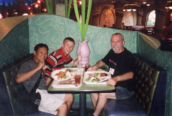 At the same time as buying and getting ^ the above here, I also purchased one of those "Mystery Box Sets" where individual boxes are sold 'blind,' as they say. But a lot of sellers on eBay are selling the entire set of boxes, which sometimes feature a "mystery figure" in black profile. This set of TDL restaurant, is a fave of mine, when I've been to TDLR. The Queen of Hearts Banquet Hall in Fantasyland, is a great buffet-style restaurant. Andplenty of help to help you find a good table, etc. The box it all comes in. What you get. SPOILER ALERT! ............................ The mystery piece is a food tray with food on it. First time in the place - TPR 2007 Japan Tour. w/Mike and Peter enjoying our food trays.... What David and I shared, at the Banquet Hall in 2013 (TPR Tour). There was enough of everything to share!