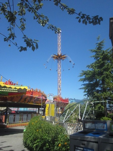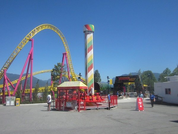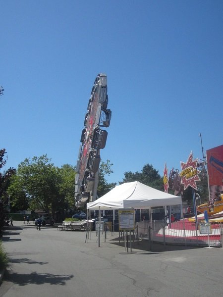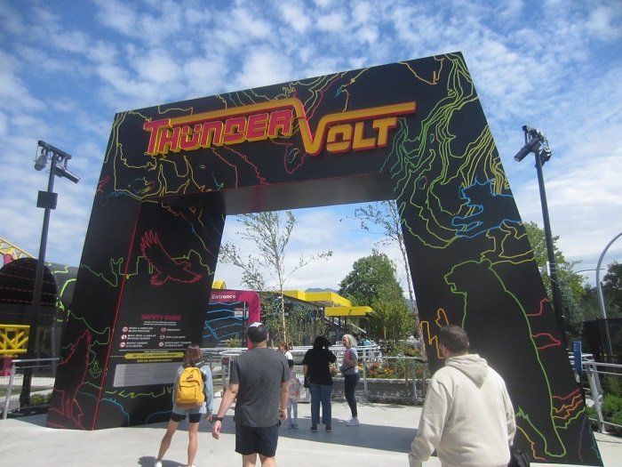 It's The Day Before our annual fair, The PNE (Pacific National Exhibition), opens. And it's been a good couple of months, between now, and 'back then' in May when Playland opened for it's 2024 season. I ended up visiting it a few times, though not as many as I've done before, in past seasons. It's an "old age thing". And I'm dealing with it, LOL. Here's the pix from my Visit(s) to Playland, after all the rain we got in June. New coaster to check out; new drinking 'huts' to get your beer from; and a LOT of DIRT! This was what the line looked like, 1/2 hour before the park opened. Glad to see they're still flying the Pride Flag. Why be sorry? Everything's open! Or so one would think ..... Coaster running. Check. The Games Arcade wasn't fully open yet, so they put claw machines there, hoping some one will play them. Over priced pizza slices. Check. ThunderVolt, behind the Kids' Drop ride. Who says "I'm so fly," anymore? View of The VOLT from the West Coast Wheel. And some dirt... A new HUGE performance venue's being built, and opening in 2026. I always enjoy taking mountain shots, when the sky is clear and blue. I decided to eat something onsite, so this where I went. Many many choices... I decided to go the carnivore way, lol. Wasn't too bad. I'd had it before, so I knew what I was getting. And that finished up this visit there! ~~~~~~~~~~~~~~~~~~~~~~~~~~~~~~~~~~~ The other visits were varied and random. Crowds were actually GI-normous, way more than I'd seen before. But other seasons the park was open included Mondays and Tuesdays in the week. This season they were not. So here's (at least) three days' visit to Playland. AtmosFEAR's looking good. Ditto the Log Flume ride. Another fantastic Dirt Shot. I don't think Enterprise goes totally upright. Only this far in it's 'tilt.' Though the run of The Gladiator is always awesome, "landing" is sooooooo sloooooow. Really slow. One of three I counted, onsite. These replace the Ride Side Bar that was closed for the new amphitheatre build. My usual - Stella Artois. Then I headed out. I attended this on July 20th. Hey - two bucks for a hot dog? I'm in! Wish I'd gotten more than one of these.... A bit messy, but still good. And my $1 popcorn refill. Using the same bucket after what? 8 seasons??? Can't wait to see these new signs lit up in the evening, during the PNE. How long would YOU wait, for a 40 second ride? During the PNE, this is going to be insane, queue wise. Speaking of 40 seconds .... Wheeeeeeee! Got my $1 refill of pop with another container that's been used for 9 seasons! I had one of Coaster Dogs more 'busy' dogs. This was with pulled pork and other stuff on it. A good one. My last visit that I actually took photos of. Unlike Disneyland's shutting down their Shooting Gallery, and as simple as it is, we still got ours! Over the hump. Another dirt shot. I'll stop after this. Hellevator now does both it's up-launch and it's fall-down, together in one cycle. (o: ....And One more Stella Artois before heading out - and getting ready for two weeks of the PNE! -