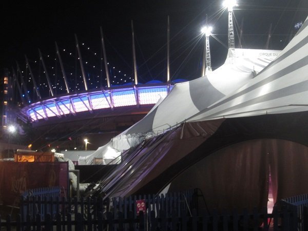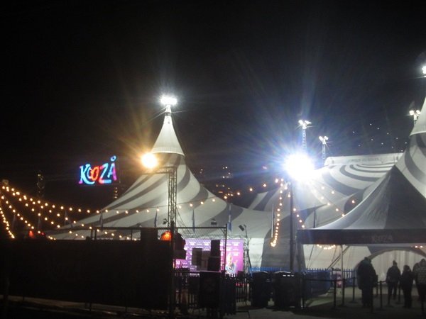 This is "a bit late" here, but these are the photos I took, when KOOZA returned to town last November. And again, we had the VIP tickets, which in my mind is still a great deal for what you get. Free food, drinks, private entry into the grand chapiteau, outdoor terrace, separate bathrooms from the gp's, and free souvenirs, including the programme, etc. Almost there. Yep, we're at the right place. The photo op to show we were there. BC Place Stadium behind the main tent. Swag to buy. I got the KOOZA t-shirt, in a much larger size, lol. And the food kept coming and coming and..... Open bar, too. A couple of cast members are always available for photo ops, before the show begins. The gp in their own entryway. Busy, busy. Just before it all starts. Start of The Bows. The whole show was wonderful! Acknowledging the band up there. . It's fuzzy, but the band is there! Final bows and goodbyes. "Until we (VIP) meet again....Dec. (Friday The)13th.....ECHO."