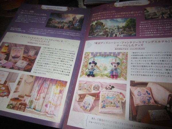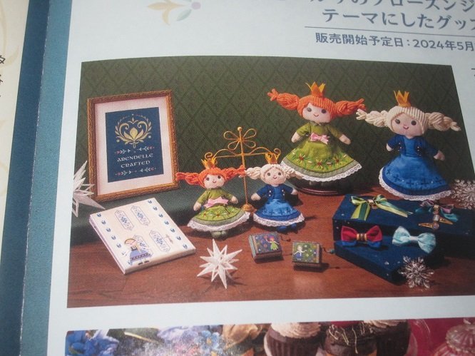 One of the Japan sellers I deal with, thru eBay, always sends me extra stuff along with what I've bought from her. Lately, she sent me a small catalog of souvenirs available in the new Fantasy Springs, opening in June. The writing is all Japanese, but the photos show what's available. I especially get a kick out of the 'hairdos' that the Elsa and Anna dolls have. -
