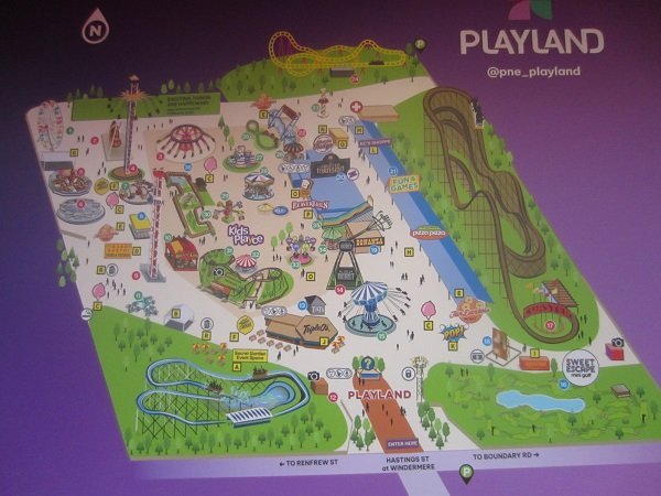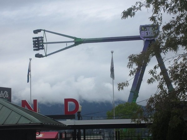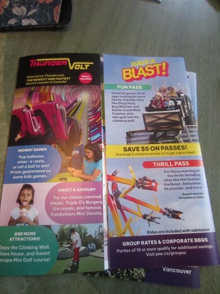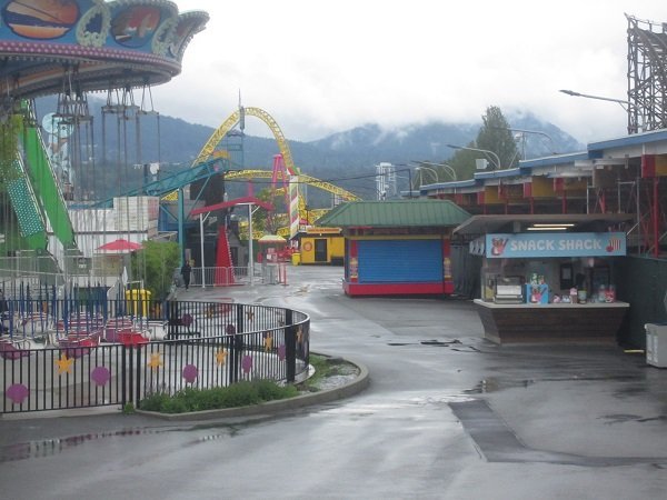 Opening Day at Playland ~ May 18/24 Rain had been falling on and off through the morning. No big deal. But my intentions were to just tour around the park, maybe get something to eat and drink, and just see what's changed (if anything) since last year. The first surprise was that all the games arcade was blocked off, and to be eventually rebuilt (the facades), assuming they're going to get it done by the time the actual PNE Fair happens, mid-August. The other surprise was that the entire row of buildings on the north side of the park, including my go-to drinking spot, the Ride Side Bar, was demolished, leaving space for the upcoming new concert amphitheatre being built. <grrr> Got a couple of rides done, food at the White Spot place, an onride pic from the Kettle Creek Mine coaster... and that was it. Both Coaster and the new ThunderVOLT weren't open. And the new coaster wasn't going to be open until July. <sighs> Until then, here's my pix... Waiting to go in. Testing, testing. The new flyer and park map. The usual plug for the upcoming August Fair. The map. A better showing of the map, on the wall of Customer Service. Not a huge crowd today. "I spy, with my little eye, something that is ....yellow." What's this? What's this? The young woman at the Snack Shack told me about the renovation they're doing with all the facades of the Games Arcade. Still testing. All blocked off. Yay. And nothing's been done with this building since .... several years ago? The Haunted Mansion wasn't going to open, until the afternoon. I was there between 11am and noon. \ This was the closest I could get to ThunderVOLT. And more green fences here. And the entire north end of the buildings .... all gone. Including my bar <sniff> I'm hoping they put it into the new arcade being rebuilt on the east side of Playland. Does anyone use the word "fly" anymore? Sky Bender was open. West Coast Wheel wasn't open - and missing a few ride buckets, too. The best landscaping of the park was here. Where the Honey Bee Express train travels around. I think the Kettle Creek Coaster sign needs a bit of a touch up, yes? No? All things considered, it's a pretty good coaster for anyone, kids and adults alike. They re-opened the Scrambler in it's original spot. Was down all last season. The White Spot eating spot. Really not that busy all the time I was there. In Canadian $$$. Pretty reasonable in American $$$, I thought. What I got: a bacon-cheese burger, fries, and a nice thick blueberry milkshake. Lots of bacon and cheese.... yum! After eating, a bit more strolling. This is the free Mini-Golf attraction. Not too busy right now. And Coaster. "Closed until further notice." Okay.... time to leave. The onride photo... ...on the Kettle Creek Coaster. And that's it, till next weekend's visit..... -