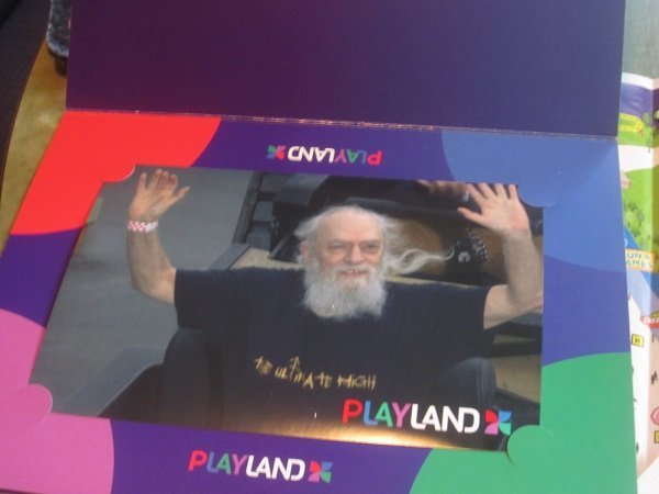 Forgot to add to the TR. They give you a Digital Copy # of the onride photo, taken. So here's a better look at myself - and check out that caption. The t-shirts came out when AtmosFEAR first opened. The gift shop, sadly, is no more. But with ThunderVOLT opening soon, who knows? Maybe they'll actually open a new gift shop, with the revamp of the Games Arcade .... along with the Ride Side Bar 2.0 -