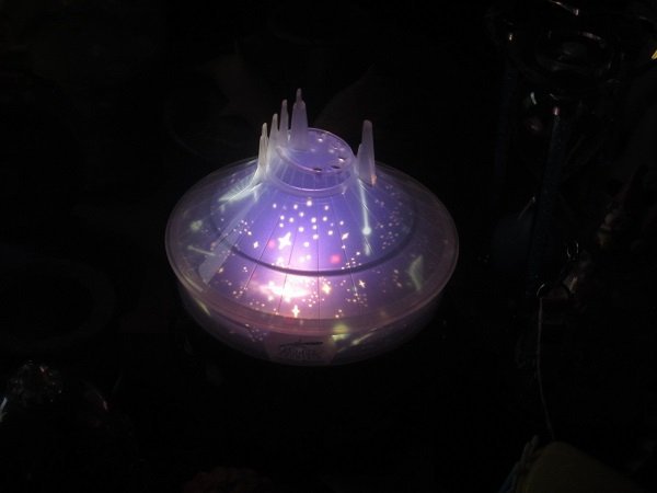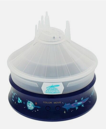 A couple of years later.... Just bought this thru eBay. It's a wonderful mini of Tokyo Disneyland's Space Mountain, in recognition of it's "Final Ignition." Which will be at the end of July, when it closes for good, and is re-imagined and rebuilt (and moved back several hundred feet), for a 2027(?) opening. When you remove the Mountain itself off the base, the light show can be projected on the ceiling. A very cool souvenir. The box. What it can do. Mine, lit up. Pretty. -