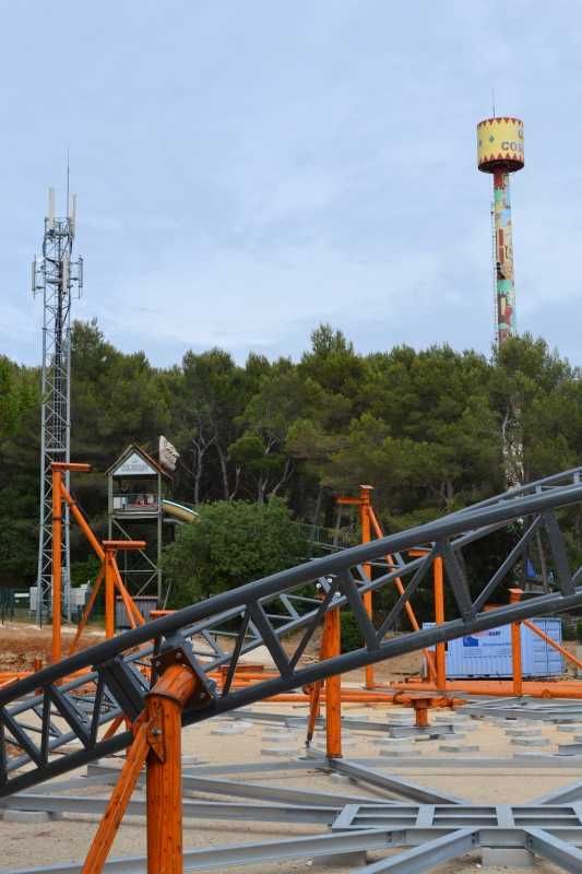 Back from Ok Corral, and guess what? Track and supports are there and they almost complete the layout, just missing the two lifts. And a first theming element shows up. Here are the pics I brought back. Fab. Missing just the lifts Got some nice curves. Nerd shot Lift support. Theming element Lowest track support (close from the ground) Manufacturer. -