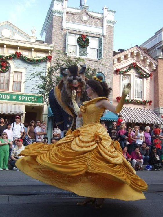 I know I'm a few months late but I am at work right now bored out of my mind and I finally have the time to post up this TR from the Candlelight Processional at Disneyland. For those of you who don't know the Candlelight Processional happens every year at Disneyland. It's been happening annually for the past 50 years and the choir is made up of local choirs in California. The choir walks the parade route starting back at It's A Small World and makes its way up to Main Street where the stage and orchestra are. There's an honorary speaker each year that reads the religious story of Christmas while the choir sings religious Christmas songs. This year the speaker was John Stamos. In the past they've had Jayne Seymour, Dick Van Dyke, and even the voice of god himself James Earl Jones. Even if you're not religious its a very beautiful event. The choir sounds amazing each year. The event is usually the first weekend in December on the Saturday and Sunday. They do 2 shows a night. Here we go! The end of the show and the end of the TR. Handbell choir sang with their hands. Two soloists who are apparently too good for choir robes. Not only are their voices better but they don't have to wear the choir moo moo. But not as cool as John Stamos. A close up. These guys were really cool and used just enough throughout the performance. The fanfare trumpeters! Uncle Jesse reads to us about the baby Jesus. 2/3 of the choir, 1/4 of the orchestra, 1/2 of the sign language interpreters, and one whole of sexy John Stamos. Uncle Jesse! Hot stuff welcomes us to the 2008 Candlelight Processional. The choir has just arrived with all their little candles. The stage area at night. Pretty isn't it? The fake tree with its ugly LED lights. IMO they really messed up by changing over. The LED's don't give that soft glow that the regular lights give off. There was a couple hundred people walking and singing. Sorry about the blur on these next two pics but here's the first line of the procession, this was in the Alice In Wonderland, Matterhorn funnel. The only two Hummer drivers that are ok in my book. Twisterella "And his brother Oswald." And I could be like, "This is my son Corky." If I have kids I want them to come out looking like this! So freakin' adorable! MY FAVORITE PART OF THE PARADE!! It has begun. We watched the Christmas parade which had a lame "Bolt" pre-parade. Pretty building. Always remember: candy preserves coffee. Where Disney fans get their clotheirs. I love these! Fake Plastic Tree! (Radiohead joke? Anyone?) But for real, it was a big fake tree! I'm still irritated about the change. No more freshly killed pine tree smell when you enter the park. =( Half of the chairs were set out already. Speakers, trees, and a fake cathedral window! Seats for the orchestra and elevated standing area for the choir. The stage in front of the train station on Main Street.