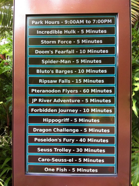 Just got back from USF/IOA. Early fall is the BEST time to go! Light crowds and cooler weather! On to the pics! The wait times at IOA New HUGE crane on site at Harry Potter Part 2 The Gringots Bank building (I think!) Across the lagoon you can see the crane and building on site. And vertical construction has begun at Transformers