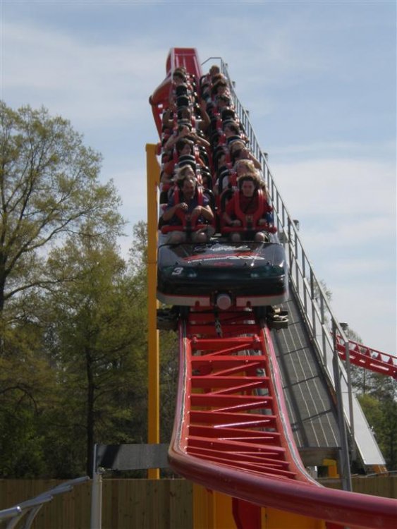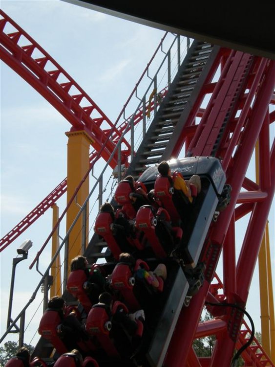 Just returned from 4 days in Virginia to ride i305 and the new ones I had not been on at Busch Gardens yet: Grover and Griffon. 1st of all, it was HOTTER in VA than FL. Yes....mid 90's on Wed while it was in the mid 80's in Orlando! Got to KD by 930am on Wednesday to purchase a Platinum Pass and beat the crowds to Intimidator. A rant: when I bought my Platinum Pass last year at Cedar Point, they refunded the $10 I just spent on parking since it is included with a Platinum Pass. Not so at KD. So, unless there is some trick I don't know about, they still make you pay for parking once before you get your pass processed. Lame. Got in the gates and luckily heard the announcement that all Platinum Passholders get in 10 minutes early to ride i305. I followed the mob, eventually passing most of them to make it to the station for the 1st train out. I should have waited for the front row while the line was short, but I opted for the back. Now my opinion: I find it hard to compare i305 and Millennium Force (from now on referred to as MF) because they are very, VERY different rides. Yes they are both giga coasters, over 300 feet tall, made by Intamin, and very fast. But whereas MF is all about graceful drops and swooping curves, i305 is all about fast changes of direction and insane amounts of positive g's. For me, it was Maverick but 3 times as tall. Is it my new #1? No. It was intense, and for me, TOO intense. Every time I rode it (8 times in all), I grey-ed out after the first drop in the turn leading to the 2nd hill. Every single time. And for me, that was not a feeling I relish. And I know the theme is all Nascar, but I found the location very sparse. There were no trees at all where the ride was built since there are no trees at a Nascar track. And while the view from the top is nice, it cannot compare to the view of Lake Erie and the rest of Cedar Point from the top of MF. Also, since I am the farthest person from a Nascar fan, I found absolutely no need to purchase an i305 shirt since it looked like a Nascar shirt. Just an observation. I do applaud the ride ops who were efficient and safe. I never waited more than 10 minutes for a ride, and the line seemed to keep moving all day long. They will need to have signs up so those waiting for the front row stay to the far right and let everyone else load the station. Sometimes it would get clogged up, and the station would get almost empty until someone realized there were two lines. Whereas i305 was a lesson in efficiency, the rest of the park was not. For example, Anaconda, Avalanche, Hurler, and Shockwave were not running the day I was there. And Back Lot Stunt Coaster and Rebel Yell had ONE train running. Yes. Rebel Yell, a RACING coaster, had one side open and was running one train, which meant a 45-60 minute wait. FAIL! The next two days I spent at Busch Gardens, a park I know very well since I worked there from 1994-97. The Sesame Street area was very well done, but I don't know why they closed off the path leading to it from the left side of Squire's. It forced everyone to walk to the right, make a left turn, cross the railroad tracks, and then make it to Sesame Street. And the queue line for the Sky Ride also seemed out of the way. Is this a normal thing? Griffon was fun, but I still prefer Sheikra for the theming and landscaping. Griffon for me just seemed like a lot of blue track and no trees. I also like Sheikra's 2nd dive into the tunnel and water feature. The new show Celtic Fyre is excellent! Instead of just mounting another show all about Irish step dancing, they wrote and produced a show which features dancing, music, TAP dancing, and live musicians. And it runs just 25 minutes. Great fun and well performed. Enjoy the pics!! Paris? Um....no The insane lift hill The brake run The queue pretty much all day! Hellooooooo.... Dominator. I rode it a few times at Six Flags Ohio but didn't remember it being so forceful! That is one big ass loop! Snoopy wanted my autograph. What can I say. Griffon dives Great views from the skyride. That's a whole mess of B&M track! The splash down is cool but nowhere as interactive as the one in Tampa Bottom of the 1st drop Questor....um....King Arthur's Challenge....um...Corkscrew Hill?? Oh...Soarin' Over Europe! BBW....boo....so sad for someone who REALLY loved this coaster! BBW station. They left all of the queue line and station intact. Hmmm.....start the rumors now! Celtic Fyre. Great show! Still remnants of the park's past: Ireland USED to be called Hastings. I love the Grover in the front row! Thanks for reading!!