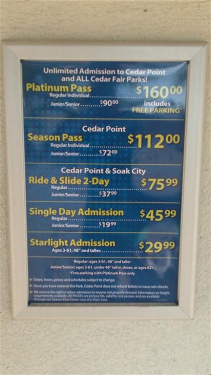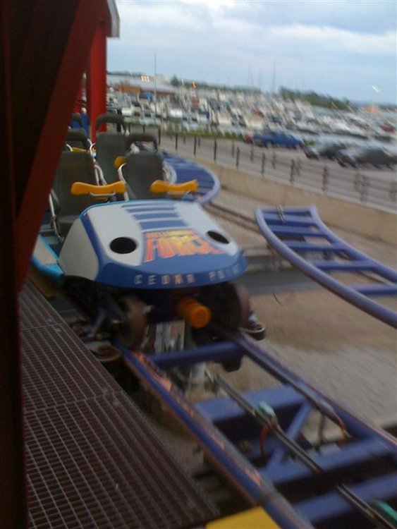 I went to Cedar Point opening week (more or less!) Got to the park on Friday May 21st to discover it was Math and Physics week. Oh joy. Me+kids= Anyway, arrived by 9am with a light rain falling. Most of the rides were still running, so we thought we would take our first spin on Millenium Force. The line seemed rather short with none of the switchbacks being used. I then realized why: they were only running one train. Yup, huge crowds of kids and single train operation on arguably the park's most popular coaster. We skipped the wait and walked down the trail. They were testing Shoot the Rapids with empty boats. Made it to Mean Streak and rode it in the rain. Never again. That coaster is awful. Then headed back to the front of the park to see single train ops on Magnum and Blue Streak. The queue for Millenium Force was now completely full and probably about a 2 hour wait. Meanwhile, the red and blue trains sat on the transfer track. We left the park, got some lunch, checked into Breaker's Express, and when we got back around 2pm, the sun had returned and apparently common sense as well. All coasters were up and running with all 3 trains on MF, all 5 (?) on Maverick, 3 on Magnum, etc. Why oh WHY didn't they just start the day this way? Just a few more thoughts and then the pictures: I was told by an employee at Millenium Force after taking a picture of the train "Sir, it's illegal to take pictures." "Illegal?" I said. "Yes. Illegal." I of course knew there was no law against picture taking and promptly reported the misguided youth to Park Op. I'm all about following the rules, but this kid was wrong. Hopefully they set him straight. As you will see below, many of the bulbs on the Ballroom and Giant Wheel were burnt out. This leads me to believe that they were never checked since last year. Bad show. Went back to the park on Monday. No crowds, beautiful weather, and I even got 3 rides on Millenium Force in the span of 20 minutes during Platinum Passholder time. Enjoy the pics! Hmmm....rainy days and Mondays always get me down! Rain+Maverick=closed Fun with webcams! I'm in the maroon jacket in front! I called my friend in Orlando who took a screen capture when we were in sight. Where I worked in 1989 Shoot the Rapids from the Paddlewheel Excursion The ride entrance Midway Market prices. It's cheaper at lunch time which is when I went! The main entrance of the park The 2nd sign once you enter the causeway. 2010n Prices The "illegal" picture. Was I on the ride? No. Was I leaning over a railing or doing anything dangerous? No. The Ballroom at night. See all the burnt out bulbs? The Giant Wheel. C'mon CP! Change out those bulbs!! If you make it off the Point, this bar serves Yards of Beer! And this is the town's lone gay bar!