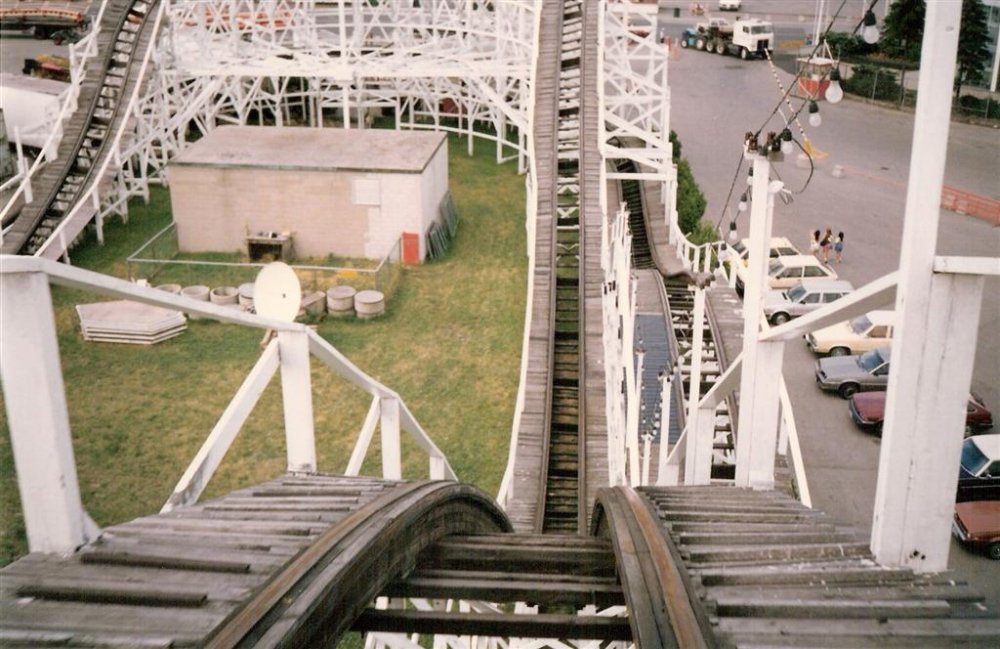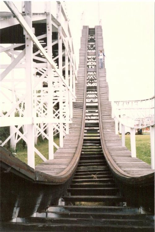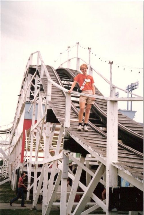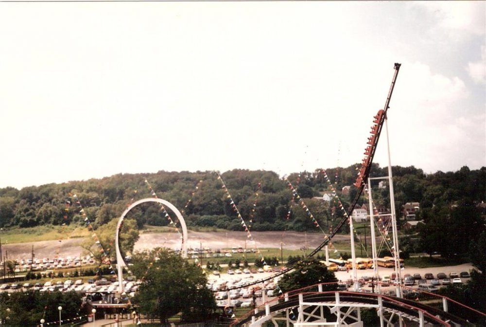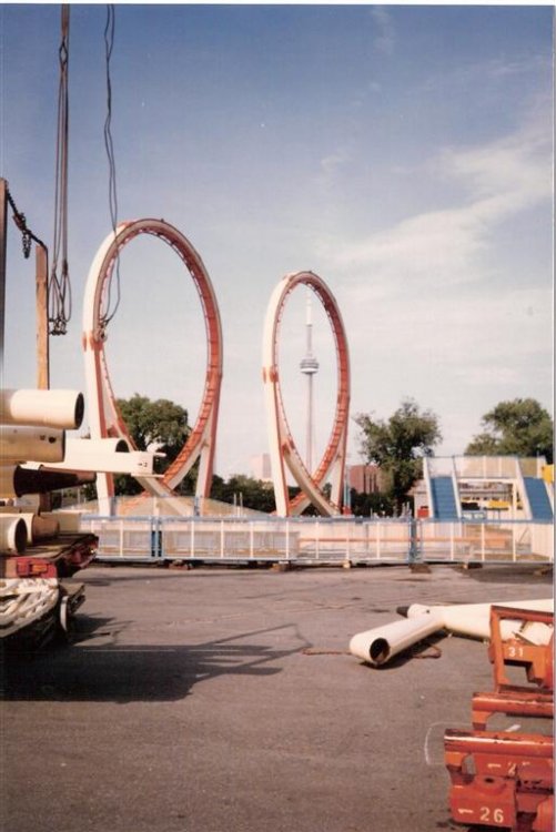 PART 2 The following pics are from the Canadian National Exposition (or is it Exhibition?) or the CNE! The park is gone now and I have no idea what happened to the Flyer. I also added one pic from Kings Island (circa 1985.) It shows the Bat station but no Bat. This was before they built the Vortex in 1987. I also have a few pics of Kennywood's Laser Loop. The area is now occupied by Lost Kennywood and the Phantom's Revenge. Thanks for looking! The Laser Loop from the top of the Thunderbolt's chain lift The Laser Loop Kennywood's Racer sign circa 1985 Kings Island pre: The Vortex They were also putting up a portable coaster for the CNE. It was not running when we were there. The station Who dressed me? Shorts with brown socks? Eeek! That's me in the Orange shirt We were able to get some great shots before ERT that afternoon. They even let us climb on the coaster! Lift hill The fan curve The Flyer trains -