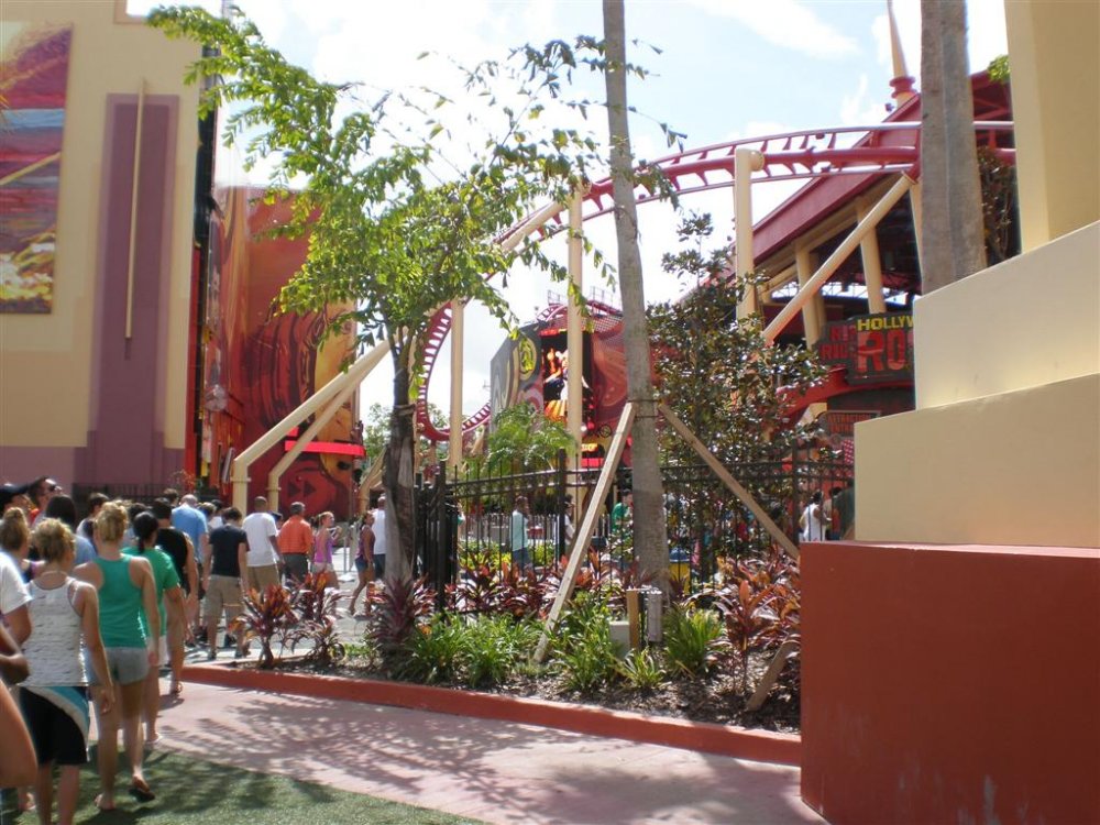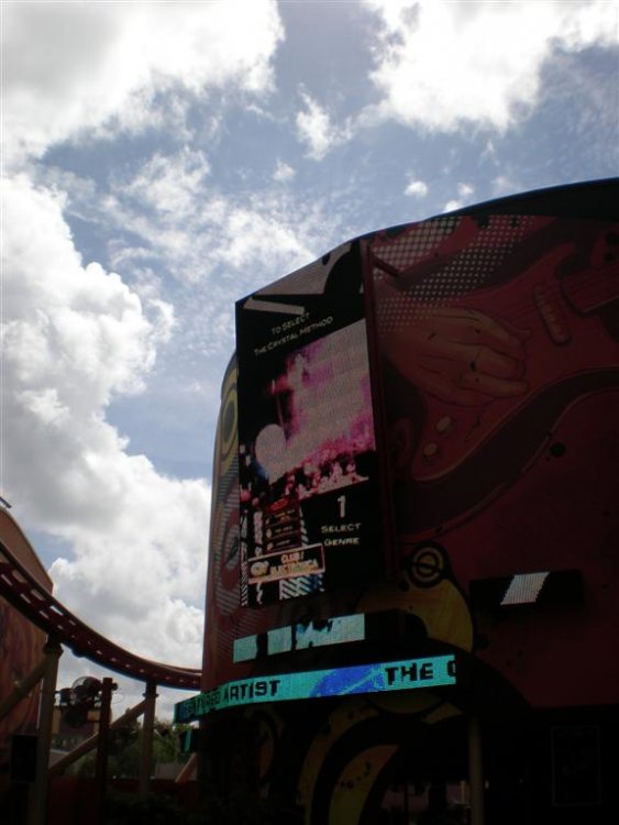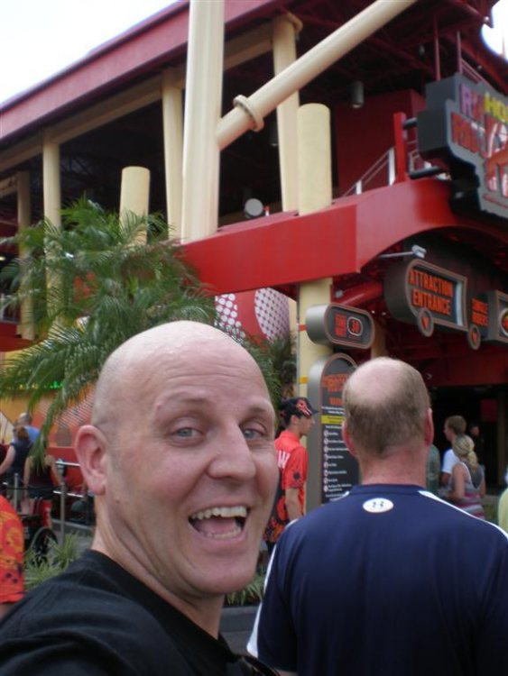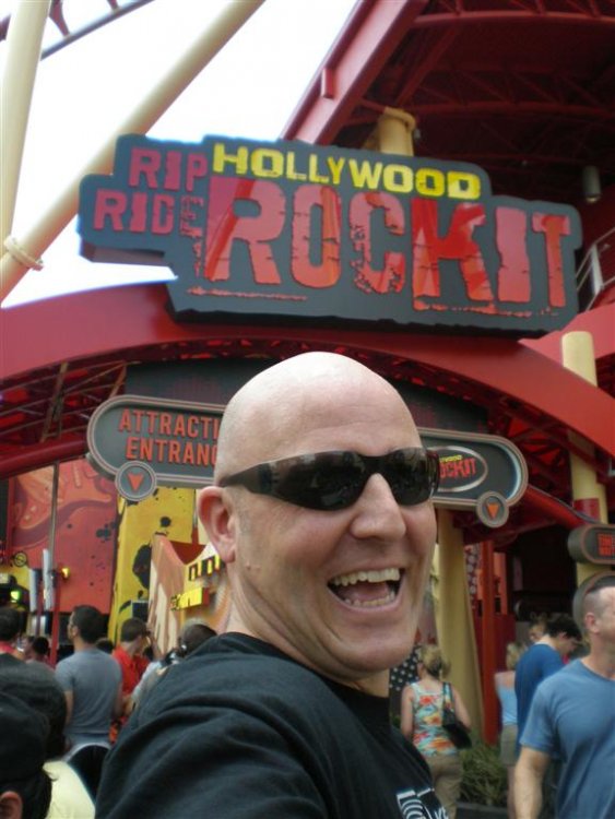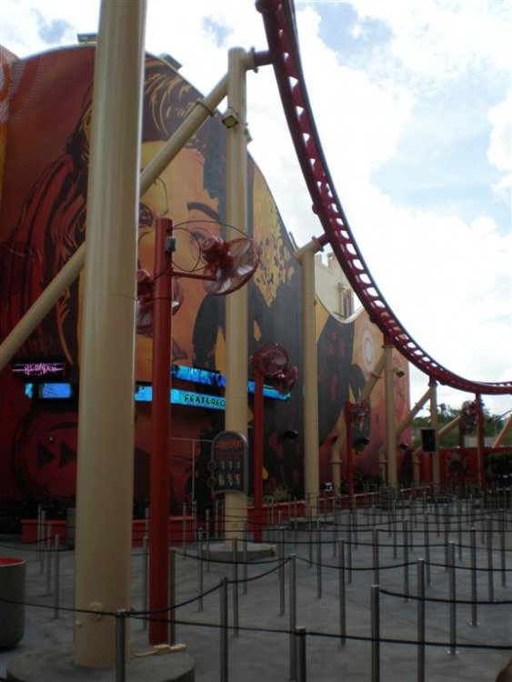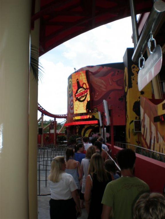 Just got back from Universal Studios and two rides on HRRR. My thoughts: It's NOT rough. I have been on a LOT of rough coasters (Gwazi, Mean Streak, Viper at SFGAdv) and HRRR is nowhere near these monsters. There is some bouncing but nothing that gave me a headache. I also rode the coaster in the very last row as well as the very front. The front gives a MUCH better ride. Visually you can see everything, and everytime you crest a hill, you get some airtime. I assume this would be similar to riding in row 4 which is the front row of the 2nd car. Since there is tiered seating, you can see from anywhere. The ride goes by pretty quickly, and the transitions between elements is pretty fluid. It's just a fun ride, and the music element adds to it. I chose "Pump Up the Volume" for my first ride and "Intergalactic" for my 2nd. You really can't hear any other audio when you are riding it. They were moving the line as quickly as they could, but with only 3 trains on the track, the line grew from 30-120 minutes as soon as it opened. I did the single rider line the 2nd time and lucked out with a front seat ride. The moving sidewalk is not moving, so they had to stop to load and unload the trains. Looking forward to night rides, but those will have to wait until Halloween Horror Nights. Also met a fellow TPR'er named Taylor! We got to do the front seat which was awesome! Enjoy the pics! They took a train off and put another one on. Waiting... See? Representin' This was full when I got off the ride about a half hour later The outside queue The lift hill My first ride! The entrance As soon as the line opened Testing right before they opened around noon today.