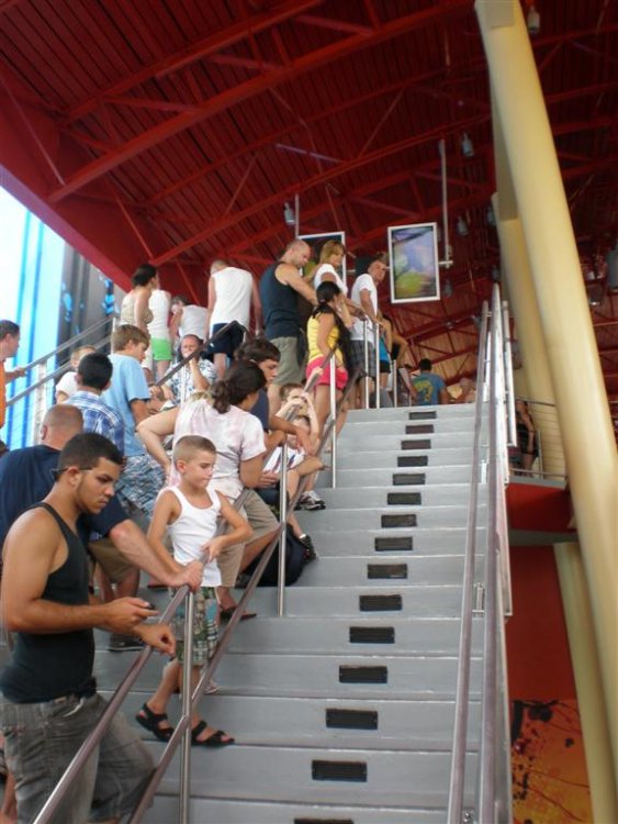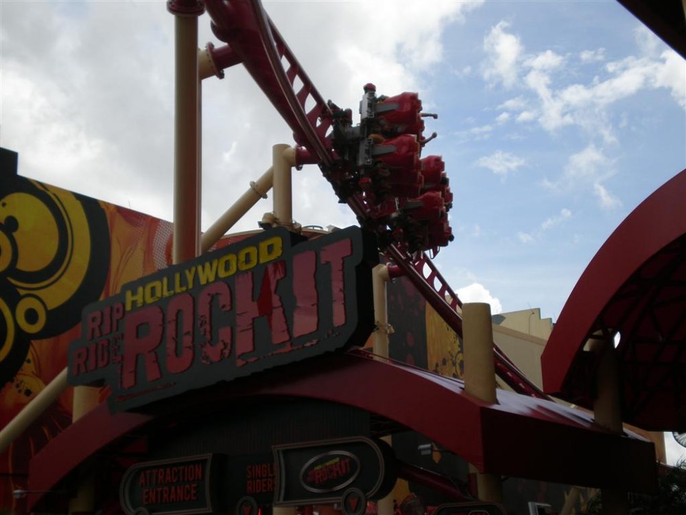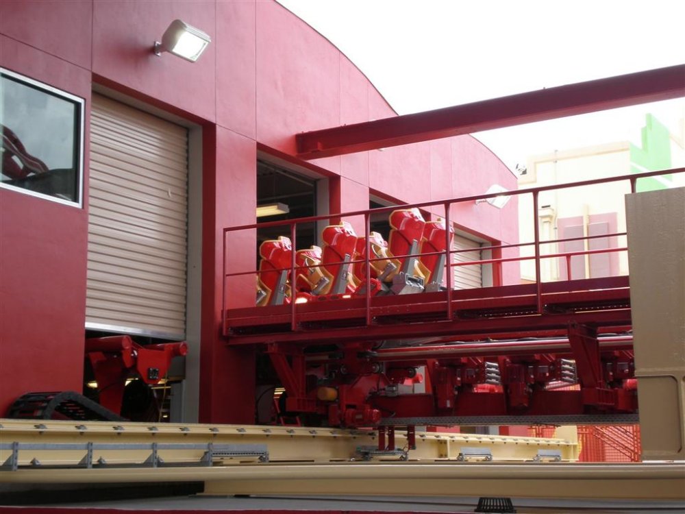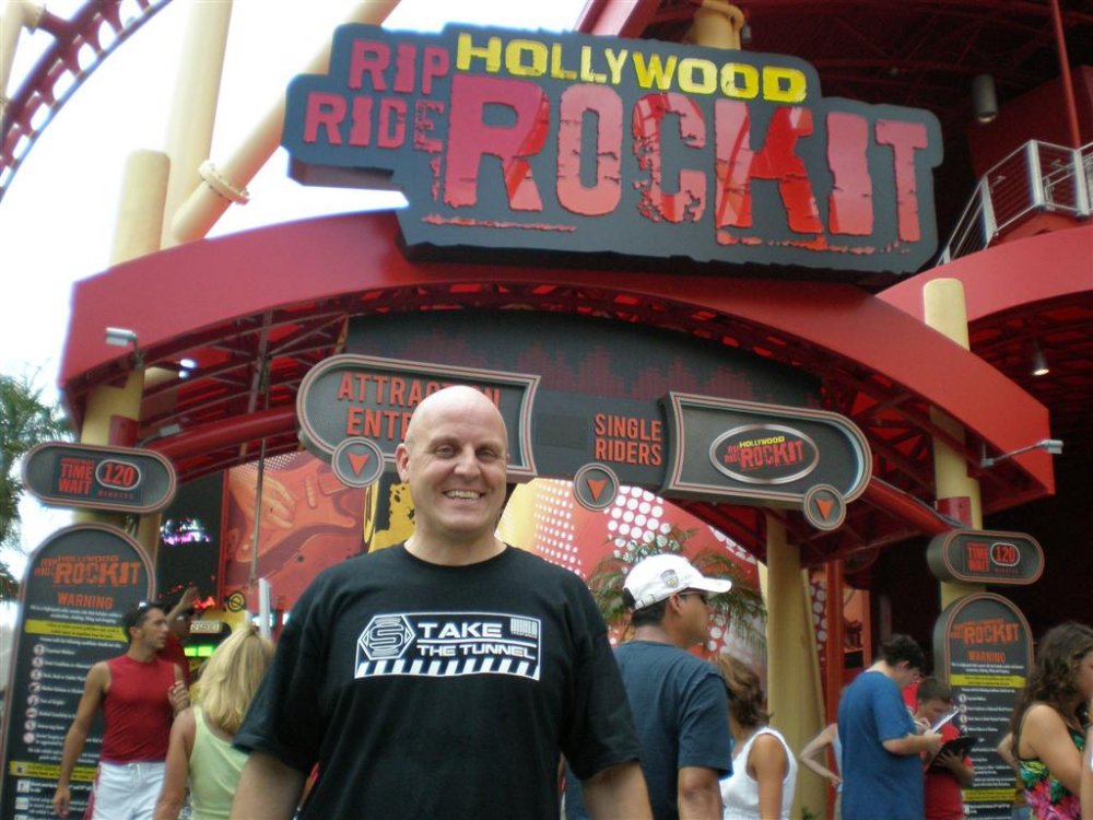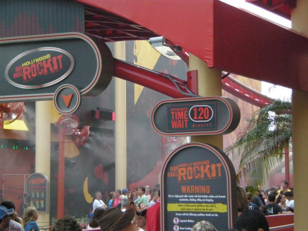 Just got back from Universal Studios and two rides on HRRR. My thoughts: It's NOT rough. I have been on a LOT of rough coasters (Gwazi, Mean Streak, Viper at SFGAdv) and HRRR is nowhere near these monsters. There is some bouncing but nothing that gave me a headache. I also rode the coaster in the very last row as well as the very front. The front gives a MUCH better ride. Visually you can see everything, and everytime you crest a hill, you get some airtime. I assume this would be similar to riding in row 4 which is the front row of the 2nd car. Since there is tiered seating, you can see from anywhere. The ride goes by pretty quickly, and the transitions between elements is pretty fluid. It's just a fun ride, and the music element adds to it. I chose "Pump Up the Volume" for my first ride and "Intergalactic" for my 2nd. You really can't hear any other audio when you are riding it. They were moving the line as quickly as they could, but with only 3 trains on the track, the line grew from 30-120 minutes as soon as it opened. I did the single rider line the 2nd time and lucked out with a front seat ride. The moving sidewalk is not moving, so they had to stop to load and unload the trains. Looking forward to night rides, but those will have to wait until Halloween Horror Nights. Also met a fellow TPR'er named Taylor! We got to do the front seat which was awesome! Enjoy the pics! They took a train off and put another one on. Waiting... See? Representin' This was full when I got off the ride about a half hour later The outside queue The lift hill My first ride! The entrance As soon as the line opened Testing right before they opened around noon today.
