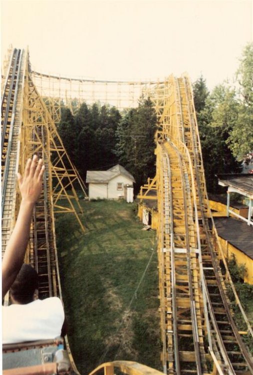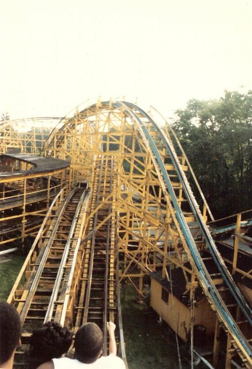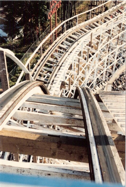 More pics from the past! The first batch were taken in 1983, the last summer the Wildcat ran before the fire in April of 1984. They were taken by Joe Riznar, the regional ACE rep back in the 1980's. The rest of the pics were taken on the last operating day of the park, Labor Day 1984 and during the auction in October of that same year. It was sad that the final day of the season was dark and dreary, while the auction day was bright and sunny. Midway The bumper cars The Old Mill completely burned down, but some boats survived. Trains in the station ready to go, but never given the chance. They actually nailed a 2X4 on the track in front of the train in case it got dispatched. What was left of the Wildcat after the fire The park's sign And the Back Wabbit in 1984 The Jack Rabbit in 1983 A full train of riders Wow. Lemonade was only $.75 The midway leading to the Wildcat on the left The fan curve and final tunnel The station as viewed from the lift hill The fan curve Looking backward down the lift hill Entering the 2nd tunnel The Wildcat The Back Wabbit in action on Labor Day 1984.