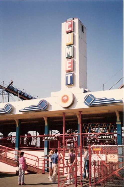 I took all of the following pictures at ACE Coaster Con VII from July 11-15, 1984. It was the only convention I ever attended, but it was a blast! I probably got about 50+ rides on the Comet and had a great time. I have more pics from the CNE coming as well! Enjoy the pics! The lift hill The Giant Coaster The Comet from the beach side. It may have been a pier I was on as well. 1984 was the 100th anniversary of the modern coaster. Hence: CAKE!! Coming into the station Loved the location right next to Lake Erie. The view down the first hill. See? Yes. The maintenance man from Crystal Beach rode up the first hill in the front seat standing. I think he got out at the top to inspect the ride, but I don't remember.
