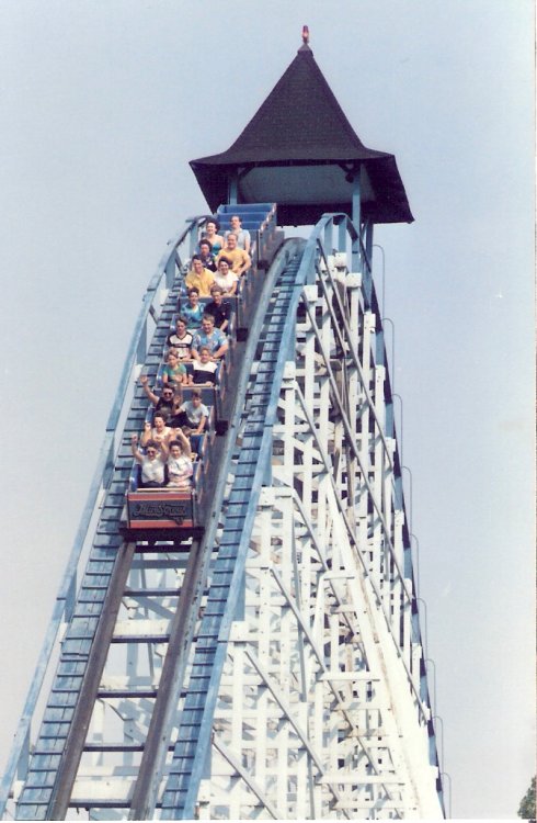 Ah yes, the Blue Streak the way it USED to be! It was an awesome ride, especially at night right on the lake. Here is a pic from my first summer working there in 1986. -