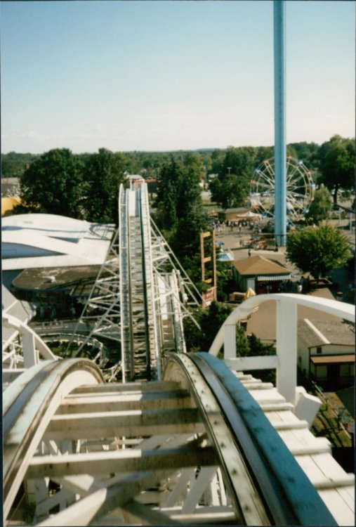 The trip down memory lane continues! Found these pictures of the park from 1985. Enjoy! The corkscrew. Yeah. They used to let it leave the station with the restraints up if no one was in the seat. Corkscrew and Big Dipper Corkscrew POV Look at that drop! Double Loop One of the two loops The other loop The trench between loops First drop The Wave Big Dipper -